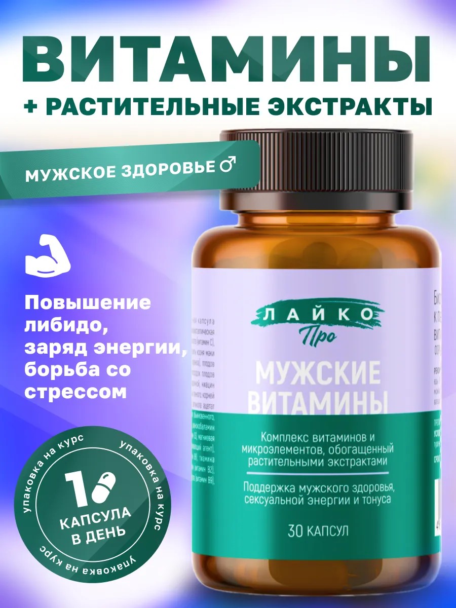 "Лайко Про Мужские витамины" - комплекс витаминов и микроэлементов, обогащенный растительными экстрактами, для поддержки мужского здоровья, сексуальной энергии и тонуса.