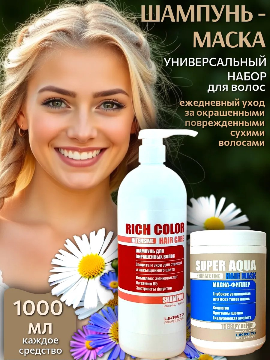 | Package contents | Hair shampoo 1000 ml - 1 pc; Hair mask 1000 ml - 1 pc; Hair cosmetics; set; shampoo for wigs; moisturizing mask; collagen mask for hair; shampoo for colored hair; hair shampoo for women; moisturizing shampoo; for highlighted hair; for bleached hair |