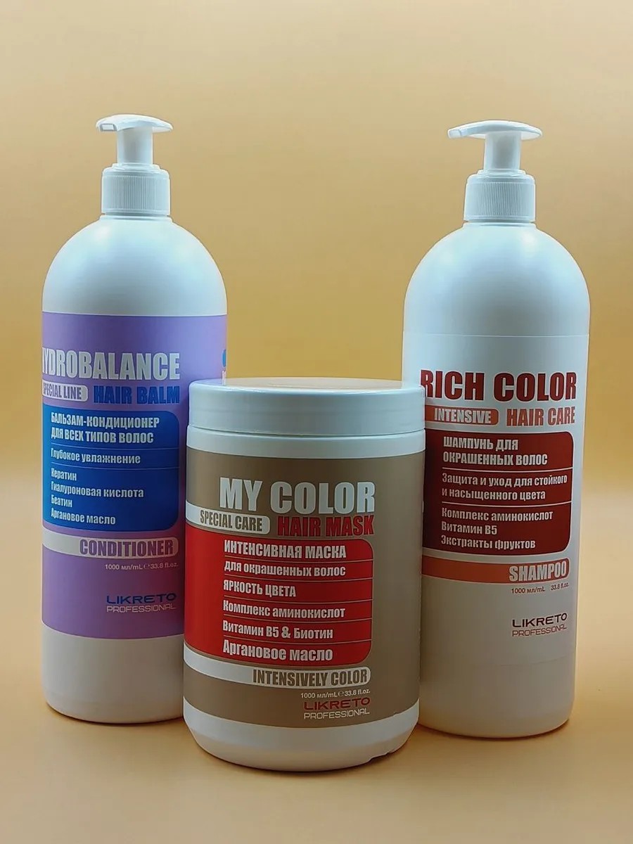 | Полное наименование товара | Шампунь для волос бальзам восстанавливающий и маска для защиты цвета окрашенных волос My Color, 1000 мл*3 |