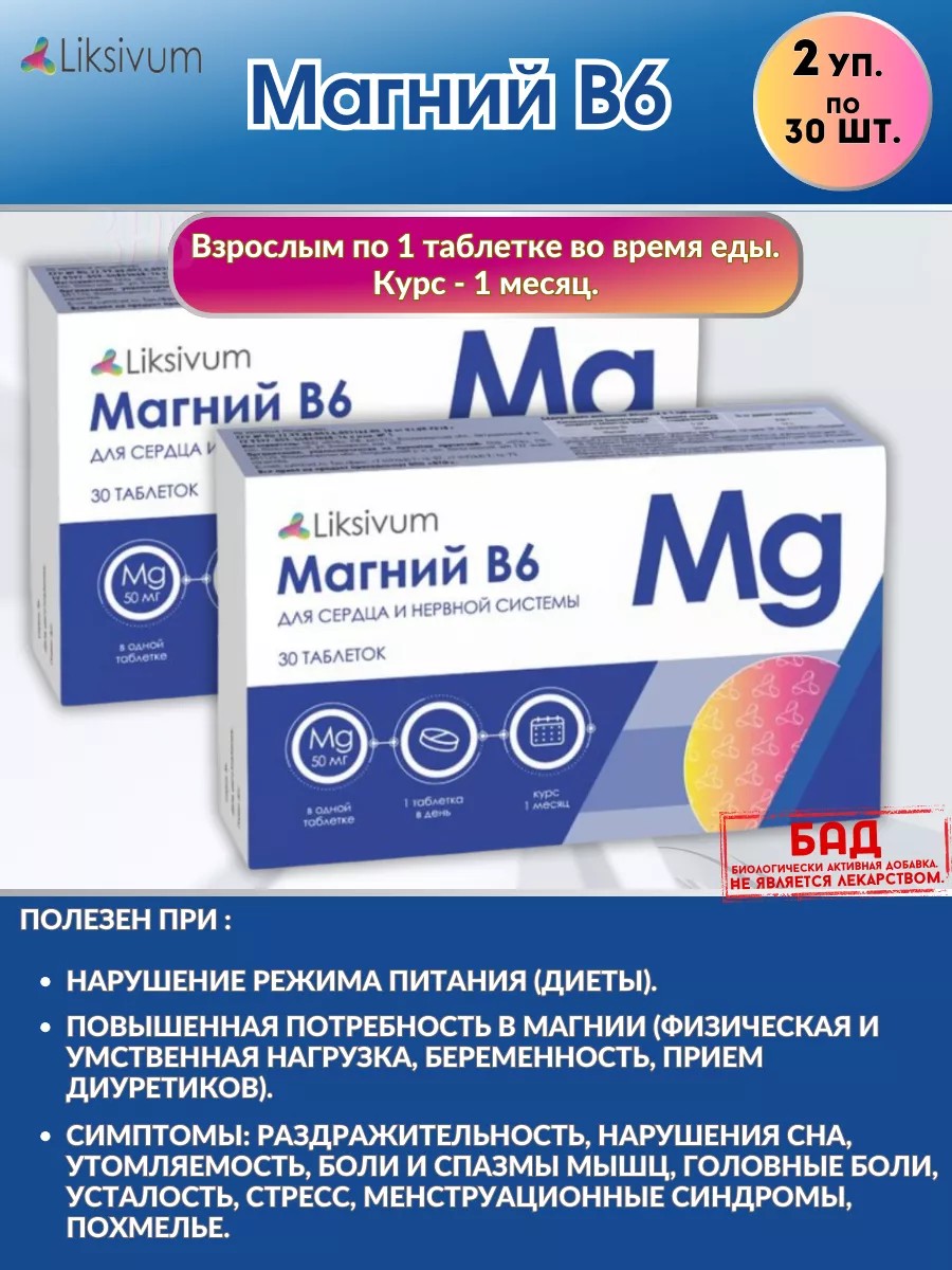 | Комплектация | Liksivum Таб Магний В6 N30 * 2уп. |