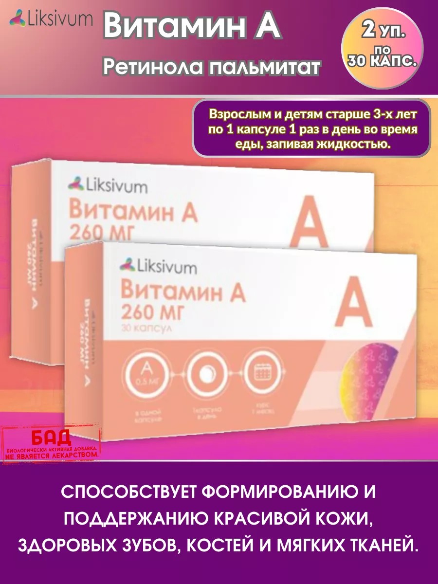 Liksivum Ретинола пальмитат Витамин А 2уп.*30капс.