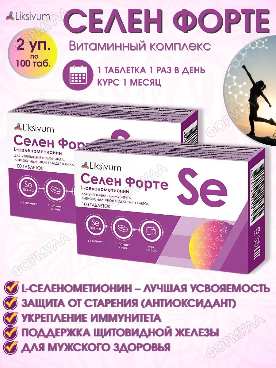 | Комплектация | Liksivum Cелен Форте Таб. 100Мкг N100; 2 уп |