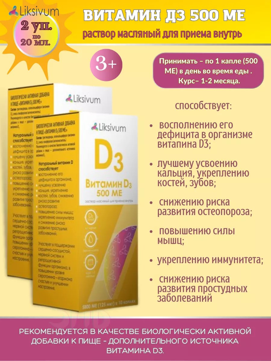 | Комплектация | Liksivum витамин d3 р-р масл. 3+ 500ме 20мл * 2 уп |