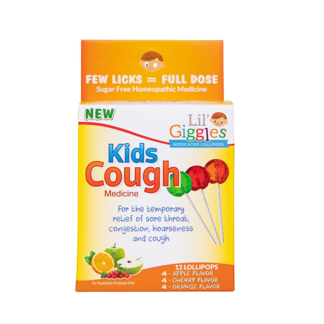 Natural Remedies for Treating Kids' Cough We created Lil' Giggles Kid's lollipops because we have children and know how hard it is to keep them healthy. This multipack makes it easy by giving you and your child cough medicine, in 3 delicious flavors: Juicy cherry, crisp apple and tangy orange. These lollipops contain real homeopathic medicine and are an all-natural, non-chemical way to keep your child healthy. Our lollipops are a FUN way for your kids to take real medicine, which they will look forward to each and every dose. Here's the best part: Lil' Giggles medicine is on the outside of the tasty lollipop, so your child gets the full dose of medication with just a few licks. Few Licks Full Dose! Relieving your child's sickness doesn't have to be difficult, synthetic or unnatural. Our natural, homeopathic medicine helps the body's own natural immunity fight disease, making it easier than ever for your child to stay healthy. Children may also safely take without side effects or interactions with other drugs. End Medication Battles with Your Child When your child is sick, getting them to take medication can be a real challenge. Lil' Giggles Homeopathic Lollipops make symptom relief easier. To concerned parents, these lollipops represent an end to medication battles with their child because to sick children, these lollipops are a welcomed treat. Sugar-free Homeopathic Medicine for Kids Ages 3 and Up Lil' Giggles Lollipops are made from homeopathic remedies which are derived from plants or mineral extracts and diluted to the desired potency. You can feel good about giving your child aged 3 or older real homeopathic medicine that is free from sugar and artificial ingredients. The lollipops are free from common allergens as parabens, gluten, nuts, dairy, soy, fish, and eggs and contain no preservatives, artificial flavor color, and are non-drowsy.TRUSTED LIL' GIGGLES BRAND: Join countless parents who trust Lil' Giggles for top-notch relief from cough, sore throat, congestion, and hoarseness for kids. Our brand is a symbol of quality, efficacy, and a steadfast commitment to your child's well-being – ensuring your family navigates through discomfort with confidence and comfort. NO SLEEPY SIDE EFFECTS: Unlike other remedies, Lil' Giggles Medicated Lollipops prioritize your child's alertness. Enjoy the relief without worrying about drowsiness, allowing your child to stay engaged and energetic during the journey. PURE GOODNESS, NO COMPROMISES: Experience peace of mind with Lil' Giggles – our lollipops are crafted without compromise. Non GMO candy, preservative-free, and free from artificial flavors, colors, dyes, nuts, or dairy, ensuring your child receives pure goodness with every pop. IRRESISTIBLE APPLE, CHERRY ORANGE FLAVOR: Transform relief for cough, sore throat, congestion, and hoarseness into a tasty delight with our individually-wrapped apple, cherry and orange-flavored lollipops. Each pop is a burst of flavor, making the remedy not only effective but also a treat your kids will look forward to. NATURAL TEMPORARY RELIEF: Enhance your child's well-being with Lil' Giggles Medicated Lollipops, providing effective, natural relief for coughs, sore throats, and cold symptoms. From soothing sore throat, wheezing, and congestion to addressing cold discomforts like headache, fever, and sneezing, these lollipops offer a holistic solution. Trust them for safe, temporary relief, ensuring your child stays comfortable and happy during recovery.