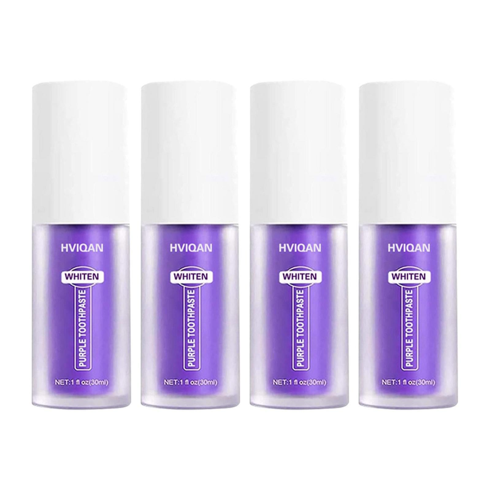 Lila Zahnpasta zur Zahnaufhellung, Farbkorrektur. Lila Zahnpasta V34, Zahnreinigungs-Zahnpasta, Aufhellung, Fleckenentfernung, Aufhellungs-Booster, reduziert die Gelbfärbung der Zähne 30 Ml (4er-packung)