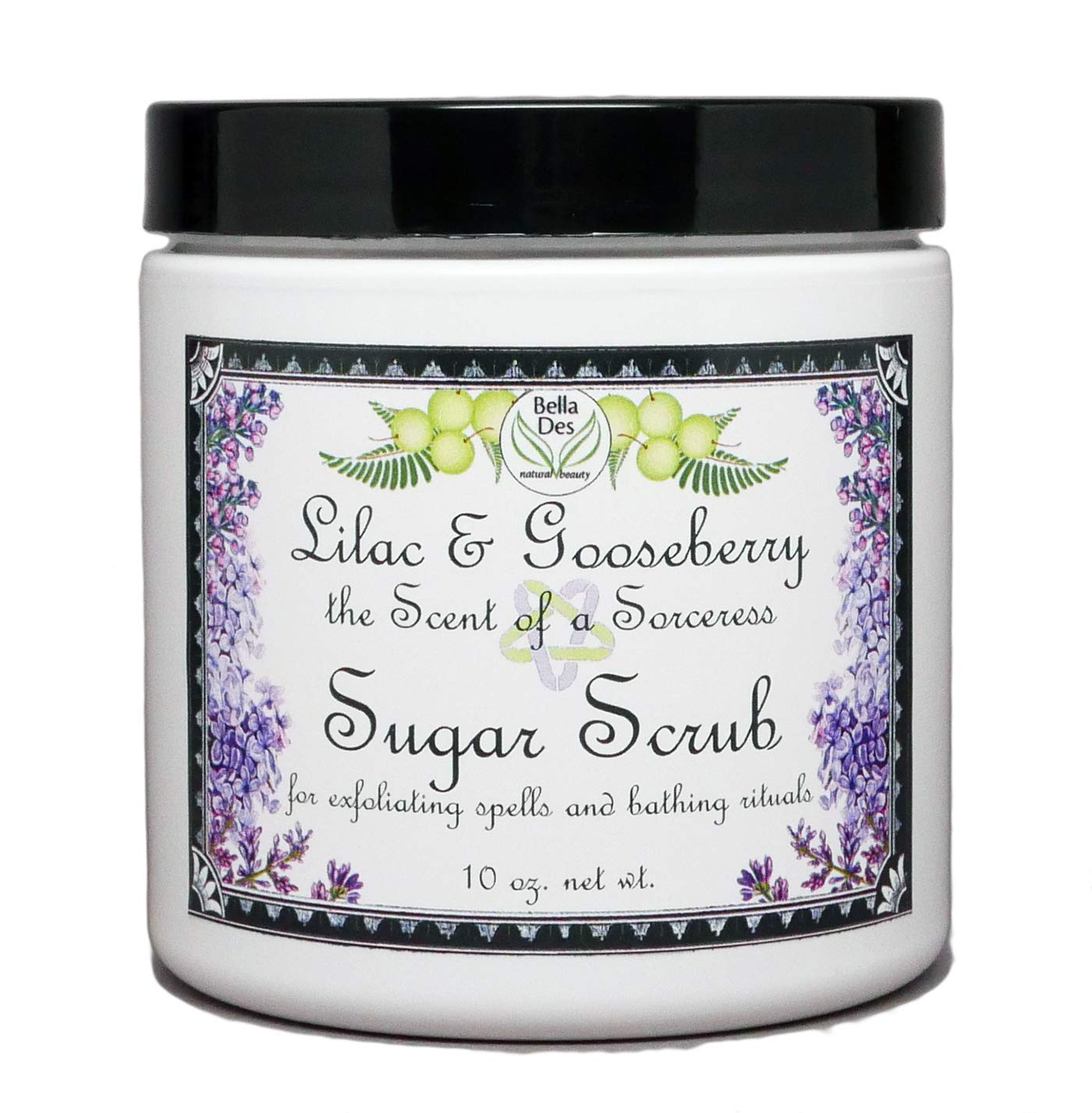 FOR EXFOLIATING SPELLS AND BATHING RITUALS Take your bathing rituals to a new level. This scrub transforms into a decadently creamy exfoliating delight as it mixes with water while you scrub skin in shower or bath. Leaves skin glowing and refreshed, soft, smooth, lightly scented and magically moisturized. UNLEASH YOUR INNER SORCERESS Lilac Gooseberries is the signature scent of the legendary sorceress, Yennefer of Vengerberg. Our Lilac and Gooseberry scent will envelop you in the essence of a mighty sorceress. The mystical marriage of delicate spring lilac with lively gooseberries evokes the magical renewal of life in springtime. Tap into the power of rebirth and conjure the forces of nature to unleash your own inner sorceress. CLEAN RINSING FORMULA EXFOLIATES WITHOUT GREASY FEELING Our unique, non greasy formula rinses cleaner, leaves skin moisturized but not oily like other scrubs. It smoothes skin by exfoliating away rough, dry, flaking skin, and then rinses it all away. Doesn't leave a heavy, oily layer on your skin or in your tub or shower. NATURAL MANGO BUTTER AND GRAPESEED OIL MOISTURIZE DRY SKIN Michigan sugar combines with our unique blend of emulsifiers, natural oils and mango butter to gently exfoliate. Moisturizing formula won't dry out skin. Soap and detergent free. Also FREE of parabens, phthalates, sulfates, and DEA. CREATE GLOWING, SEXY, HEALTHY LOOKING SKIN Remove the ugly, dry, ashy, bumpy skin that is hiding your beautiful healthy skin. PRODUCT INFORMATION: 10 ounces net wt. scrub in a jar with screw on cap. HAND MADE IN AMERICA Created with our hands and hearts for you in Ann Arbor, Michigan, USA.