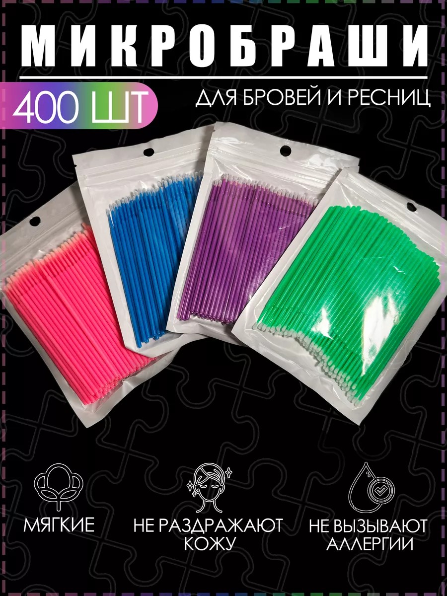 | Комплектация | Микробраши - 400 шт; щеточка для бровей и ресниц - 1 шт |