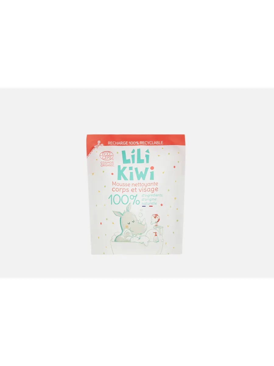 The LiLi KiWi Cleansing Foam Refill, "Mousse Nettoyante Corps et Visage," is an ideal find for caring parents who want to provide comfortable and safe skin care for their children. This product is specially designed for children aged 3 to 11 years and is great for the whole family, especially for adults with sensitive skin.