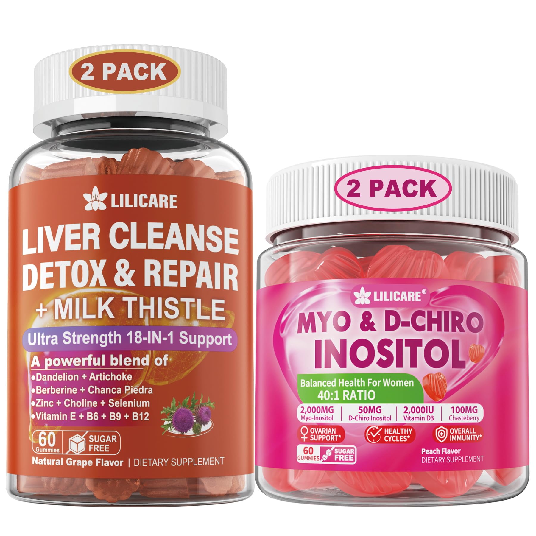 LILICARE Bundle: 18-in-1 Liver Cleanse Detox & Repair Gummies with Milk Thistle & Inositol Gummies Ideal 40:1 Ratio Myo & D-Chiro Inositol Supplement