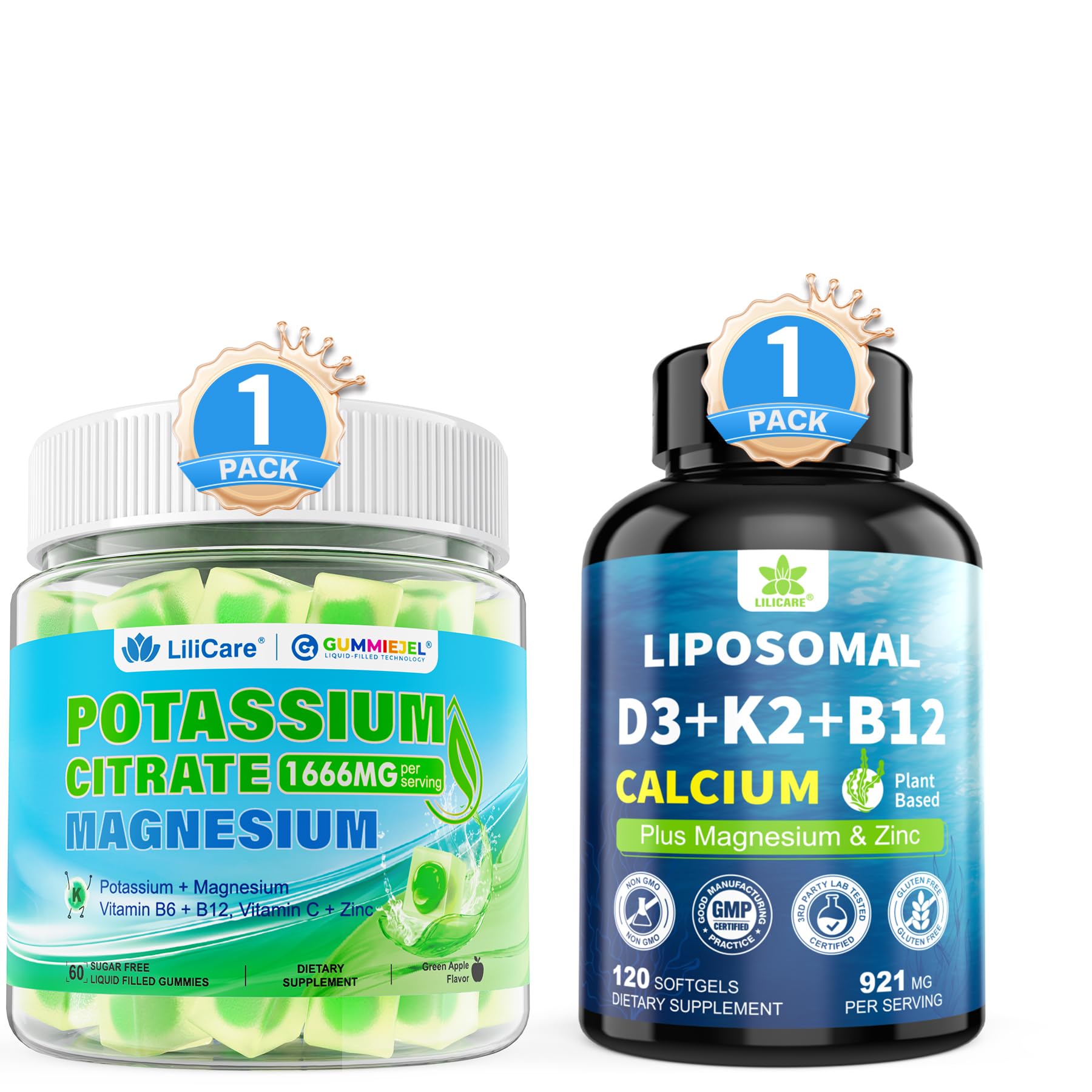 LILICARE Calcium D3 K2 Magnesium Zinc Supplements Potassium Magnesium Gummies 2 Pack