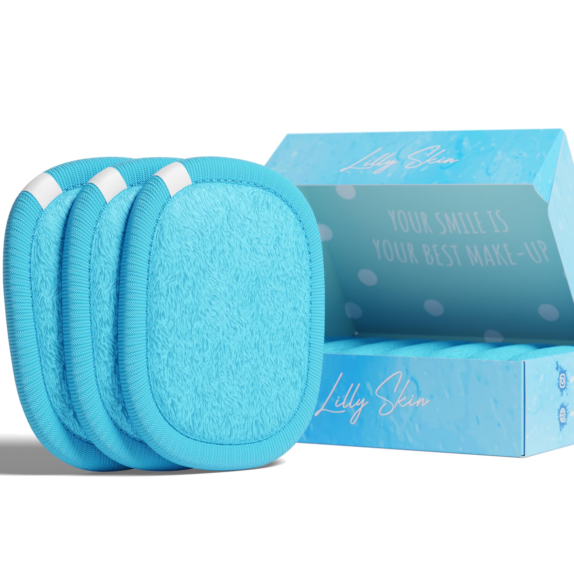 Lilly Skin Washable Reusable Makeup Remover Pads - Square Microfibre Cleansing and Exfoliating Wipes for Facial Skin - Box of 7 Faux Cotton Fabric Pads - Chill Blue - XL XL Chill Blue