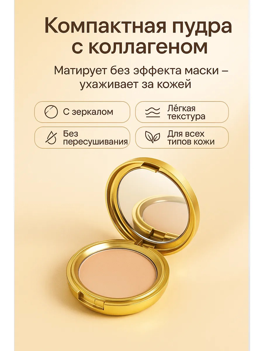 Идеальный макияж начинается с качественной основы. Компактная пудра для лица с коллагеном — это косметика, которая объединяет декоративный эффект и уход за кожей. Она помогает выровнять тон, убрать жирный блеск и придать коже естественный матовый финиш, при этом не создавая эффекта маски.