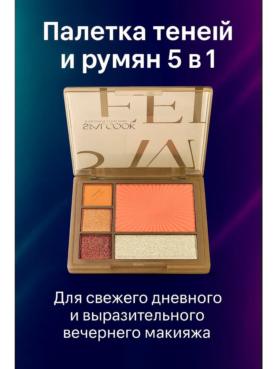 Красивый макияж глаз невозможен без качественных теней. Палетка теней для век с удачно подобранными оттенками помогает подчеркнуть естественную красоту, сделать взгляд выразительным и создать как нежный дневной образ, так и эффектный вечерний макияж. Универсальная компактная палетка из 5 цветов объединяет матовые, сатиновые, шиммерные и глиттерные текстуры, что делает её удобным инструментом как для начинающих, так и для опытных визажистов.