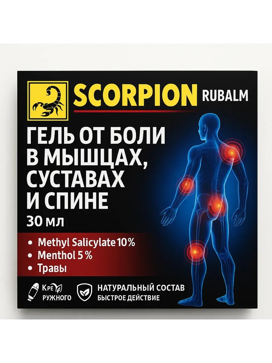 Ищете эффективное средство от боли в спине, шее или суставах? Попробуйте Scorpion Rubalm — гель с мощной формулой на основе метилсалицилата, ментола и трав, который быстро снимает воспаление, облегчает боль и восстанавливает подвижность.