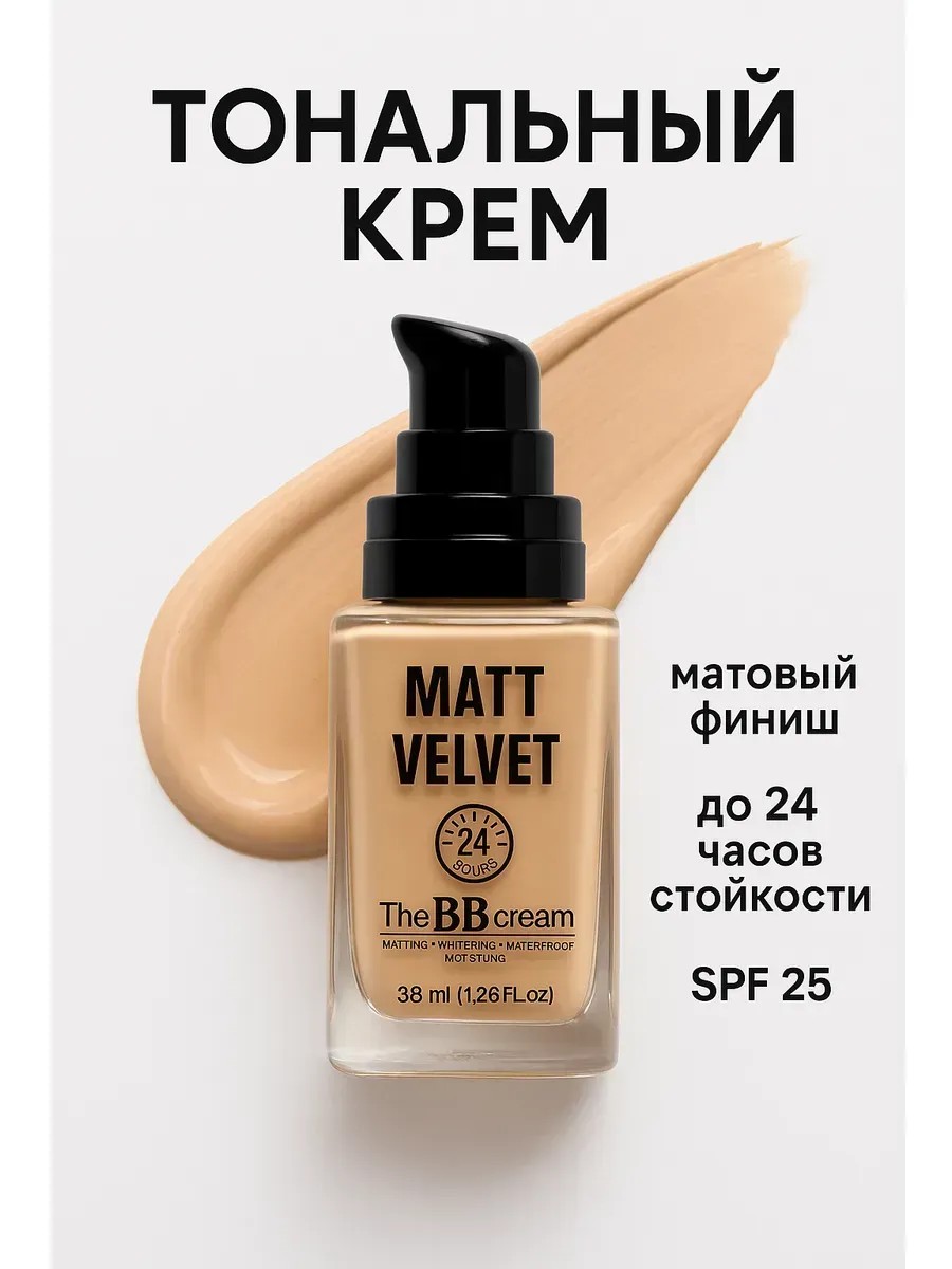 Многофункциональный BB крем для лица с матовым финишем — это сочетание тональной основы, уходового средства и увлажняющего крема. Создает ровное, бархатистое покрытие, скрывает несовершенства, выравнивает тон кожи и держится до 24 часов без необходимости обновления