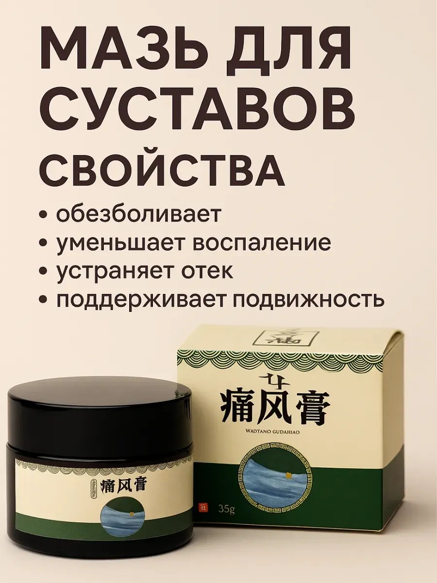 Эффективное средство для снятия боли и воспаления в суставах. Мазь обладает натуральным составом из традиционных китайских трав, которые активно действуют на проблемные участки, уменьшая отёчность, улучшая подвижность и устраняя дискомфорт. Идеально подходит при артрите, подагре, остеохондрозе, ревматизме и болях в пояснице или коленях.