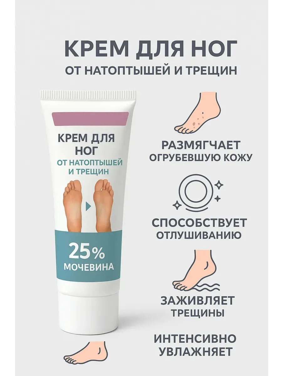 Крем для ног с мочевиной от трещин, сухости, натоптышей