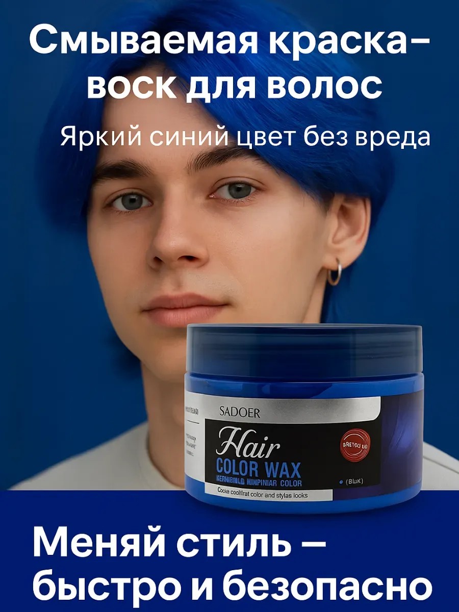 средство для волос, модный образ, временное окрашивание, яркий синий цвет,воск для волос, синий воск для волос, цветной воск для волос, временная краска для волос,