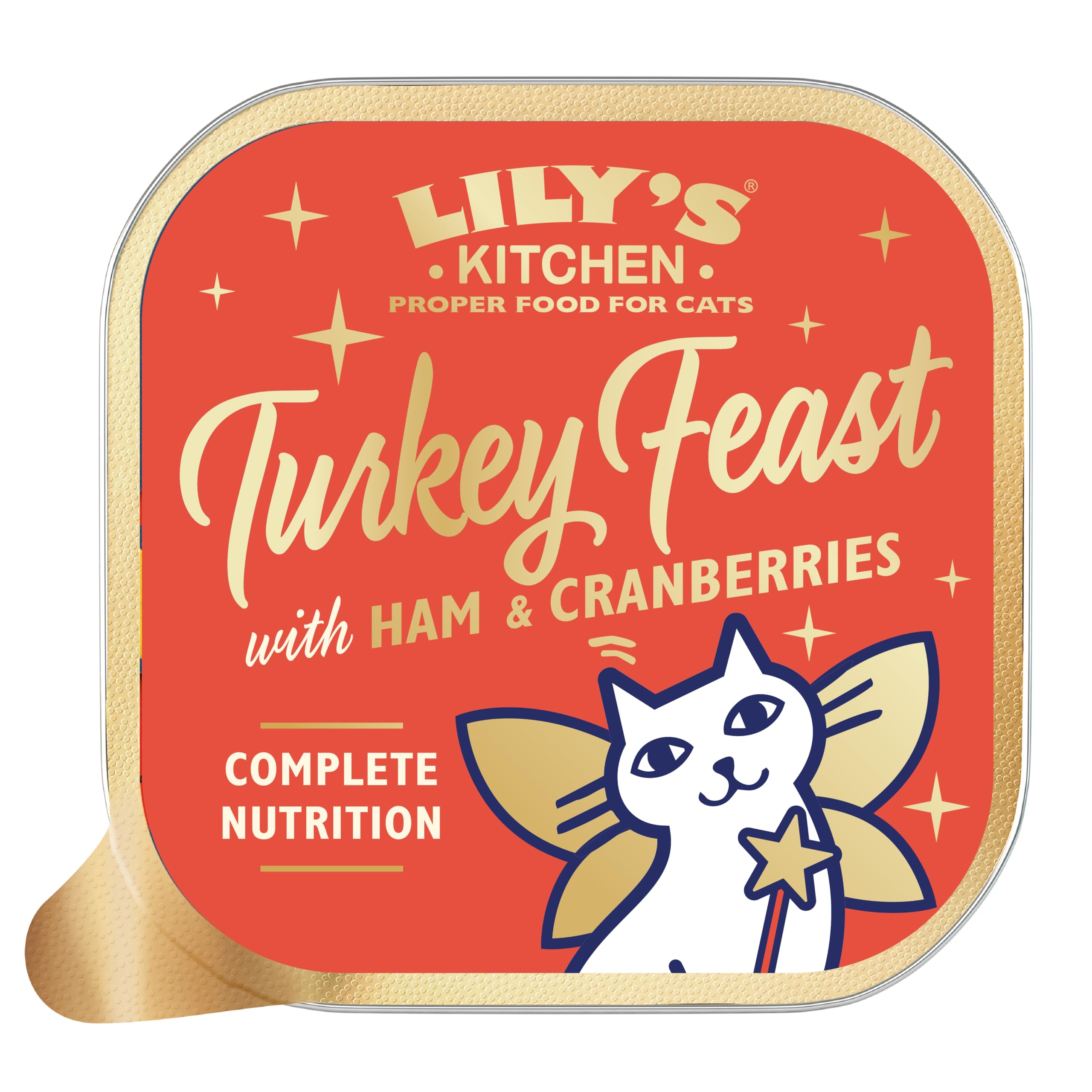 December 24. Isn't Christmas Eve the most delicious meal of the year? And not just for us, two-legged people! It seems that dogs also want to celebrate the end of year holidays. So we concocted a very special dinner for them… A spectacular delicacy of three birds and its garnish. Freshly prepared turkey, duck and goose meat, accompanied by seasonal parsnips and lingonberries, of course. After all, dogs are part of the family too. They deserve, just like us, a festive meal during this time of conviviality. INGREDIENTS This complementary food is suitable for adult dogs aged over 4 months. Christmas menu: Composition: 60 freshly prepared: turkey (40 ), goose (10 ), duck (10 ), parsnip (4 ), carrots (3 ), cranberries (3 ), broccoli, apples, minerals, aromatic herbs (solidago, nettles, anise seed, rosehip, calendula petals, cleavers, kelp, alfalfa, milk thistle, dandelion root, root burdock, celery seeds). Additives (per kg): vitamins: vitamin D3 200 IU, vitamin E 20 mg. Trace elements: zinc (as hydrated zinc glycine chelate) 25 mg, manganese (as hydrated glycine manganese chelate) 1.4 mg, iodine (as anhydrous calcium iodate) 0.75 mg, copper (as copper(II) chelate and amino acids, hydrated) 1 mg. Technological additives: carob seed flour. DIRECTIONS FOR USE Recommended quantities This food should be served at room temperature. Make sure your cat always has fresh water available. These quantities are given as an indication and may vary depending on your cat's activity level. 24 H Cat 1-2 kg: 70-110 g Cat 3-4 kg: 140-175 g Cat 5-6 kg: 200-230 g Serve at room temperature with a bowl of cool water. At Lily's Kitchen, we create premium nutrition using natural ingredients and freshly prepared meat and offal to provide the best for your furry friend. In addition to Christmas recipes, we offer a diverse range of dry and wet cat food, treats, including organic products, complete meals, and recipes for all cats, regardless of their lifestyle. This recipe is made with freshly prepared meat such as freshly prepared turkey and savory ham, and juicy cranberries, and packaged in recyclable packaging. A Christmas treat for cats with a soft, melt-in-the-mouth texture, made with responsibly sourced ingredients in a grain-free and complete recipe. Now your furry friend can join in the festivities with you. 24 décembre. Le réveillon de Noël n'est-il pas le repas le plus succulent de l'année ? Et pas uniquement pour nous, personnes à deux pattes ! Il semblerait que les chiens aussi ont envie de célébrer les fêtes de fin d'année. Nous leur avons donc concocté un dîner très spécial… Un spectaculaire délice de trois volailles et sa garniture. De la viande de dinde, de canard et d'oie fraîchement préparée, assortie de panais de saison et d'airelles, bien entendu. Après tout, les chiens aussi font partie de la famille. Ils méritent tout comme nous un repas de fête en cette période de convivialité. INGRÉDIENTS Cet aliment complémentaire convient aux chiens adultes et âgés de plus de 4 mois. Menu de Noël : Composition : 60 fraîchement préparés : dinde (40 ), oie (10 ), canard (10 ), panais (4 ), carottes (3 ), airelles (3 ), brocoli, pommes, minéraux, herbes aromatiques (solidago, orties, graine d'anis, cynorhodon, pétales de calendula, gaillet gratteron, laminaires, luzerne, chardon-marie, racine de pissenlit, racine de bardane, graines de céleri). Additifs (par kg) : vitamines : vitamine D3 200 UI, vitamine E 20 mg. Oligo-éléments : zinc (sous forme de chélat de zinc et de glycine hydraté) 25 mg, manganèse (sous forme de chélate de manganèse de glycine hydraté) 1,4 mg, iode (sous forme d'iodate de calcium anhydre) 0,75 mg, cuivre (sous forme de chélate de cuivre(II) et d'acides aminés, hydraté) 1 mg. Additifs technologiques : farine de graines de caroube. MODE D'EMPLOI Quantités recommandées Cet aliment doit être servi à température ambiante. Veillez à ce que votre chat ait toujours de l'eau fraîche à disposition. Ces quantités sont données à titre indicatif et peuvent varier en fonction du niveau d'activité de votre chat. 24 H Chat 1-2 kg : 70-110 g Chat 3-4 kg : 140-175 g Chat 5-6 kg : 200-230 g Servir à température ambiante avec un bol d'eau fraîche. Chez Lily's Kitchen, nous élaborons une alimentation de premier choix à partir d'ingrédients naturels et de viande et d'abats fraîchement préparés pour offrir le meilleur à votre boule de poils. En plus des recettes de Noël, nous proposons une gamme variée d'aliments pour chats, secs, humides, friandises, notamment des produits bio, des repas complets et des recettes pour tous les chats, quel que soit leur mode de vie. Cette recette est élaborée à partir de viande fraîchement préparée comme de la dinde fraîchement préparée et du savoureux jambon, et d'airelles juteuses, et conditionnée sous emballage recyclable. Un délice de Noël pour chats à la texture moelleuse et fondante, élaboré avec des ingrédients issus de filières responsables selon une recette sans céréales et complète. Votre boule de poils peut désormais participer aux festivités avec vous.