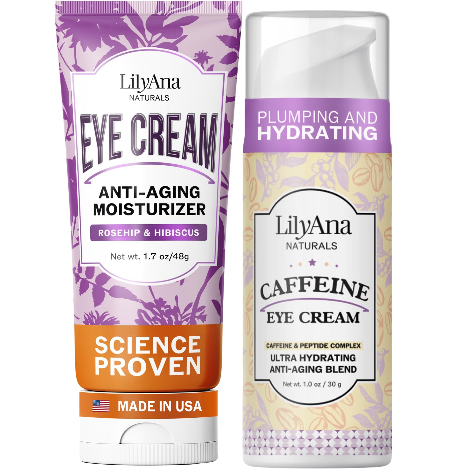 Say goodbye to puffiness and dark circles with the Eye Cream Caffeine Eye Cream Duo, a targeted skincare bundle designed to hydrate, smooth, and energize the delicate under-eye area. Our Eye Cream is formulated with a botanical blend to deeply hydrate, reduce puffiness, fade dark circles, and smooth fine lines for brighter, more youthful-looking eyes. Our Caffeine Eye Cream is enriched with caffeine and peptides to energize tired eyes, minimize puffiness, and firm the under-eye area while improving elasticity and reducing visible wrinkles. Together, this bundle delivers a complete eye care solution, targeting wrinkles, puffiness, crow's feet, and dark circles for eyes that look refreshed, awake, and revitalized.CLEAN CRUELTY-FREE FORMULAS: Gentle, fragrance-free skincare set crafted with nourishing botanicals. Non-greasy, fast-absorbing, and results-driven. A great value bundle and thoughtful eye care gift set. AM PM ROUTINE: Apply either of the Eye Creams in the morning to awaken and de-puff as well as at night for ongoing hydration, smoothing, and anti-aging benefits. EYE CREAM FOR PUFFINESS: Enriched with caffeine and peptides, this energizing formula helps de-puff, firm, and tighten under-eye skin, reducing visible wrinkles and refreshing tired eyes. REDUCE DARK CIRCLES FINE LINES: Lightweight, botanical-rich Eye Cream hydrates the delicate under-eye area to fade dark circles, reduce puffiness, and smooth crow's feet for brighter, radiant eyes. EYE CREAM BUNDLE: Targets puffiness, dark circles, wrinkles, and fine lines, leaving eyes refreshed, hydrated, and more youthful-looking.