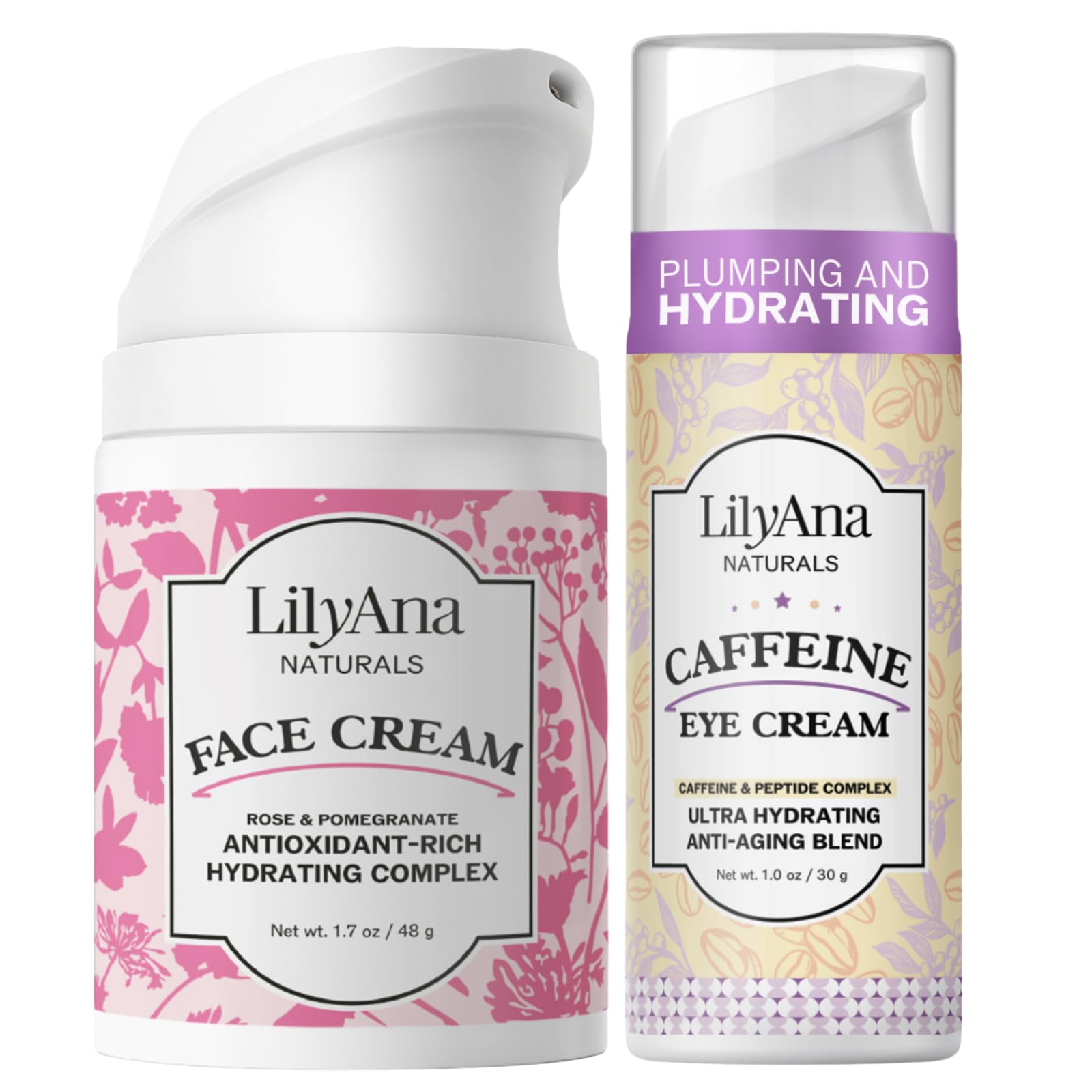 Pamper your skin with the Face Cream Caffeine Eye Cream Bundle, a powerful duo designed to deeply hydrate, reduce puffiness, and smooth signs of aging for a healthy, youthful glow. Our Caffeine Eye Cream is infused with caffeine and peptides to reduce puffiness, fade dark circles, and smooth fine lines around the delicate eye area, leaving eyes refreshed, bright, and revitalized. Our Face Cream is a rich yet fast-absorbing moisturizer that delivers long-lasting hydration, plumps and firms skin, and strengthens the skin barrier. It relieves dryness and restores softness without a greasy feel. Together, this bundle provides the ultimate hydration anti-aging solution, targeting dryness, puffiness, dark circles, fine lines, and wrinkles for smoother, firmer, more radiant skin.CLEAN CRUELTY-FREE FORMULAS: Gentle, fragrance-free skincare bundle made with nourishing botanicals. Non-greasy and effective. A great value set and thoughtful gift bundle for hydration anti-aging. COMPLETE AM PM ROUTINE: Apply Caffeine Eye Cream morning night to refresh and smooth, and use Face Cream AM PM for daily hydration and anti-aging care. Suitable for all skin types, including mature. FACE CREAM FOR DEEP HYDRATION: Rich yet lightweight moisturizer plumps and firms skin, restores elasticity, strengthens the barrier, and relieves dryness for soft, glowing, healthy-looking skin. CAFFEINE EYE CREAM FOR DARK CIRCLES: Energizing eye cream with caffeine and peptides helps reduce puffiness, brighten dark circles, and smooth wrinkles, leaving tired eyes refreshed and revitalized. MOISTURIZE REFRESH BUNDLE: Targets dryness, puffiness, fine lines, and dark circles to deliver hydration and renewal for smoother, radiant, youthful-looking skin.
