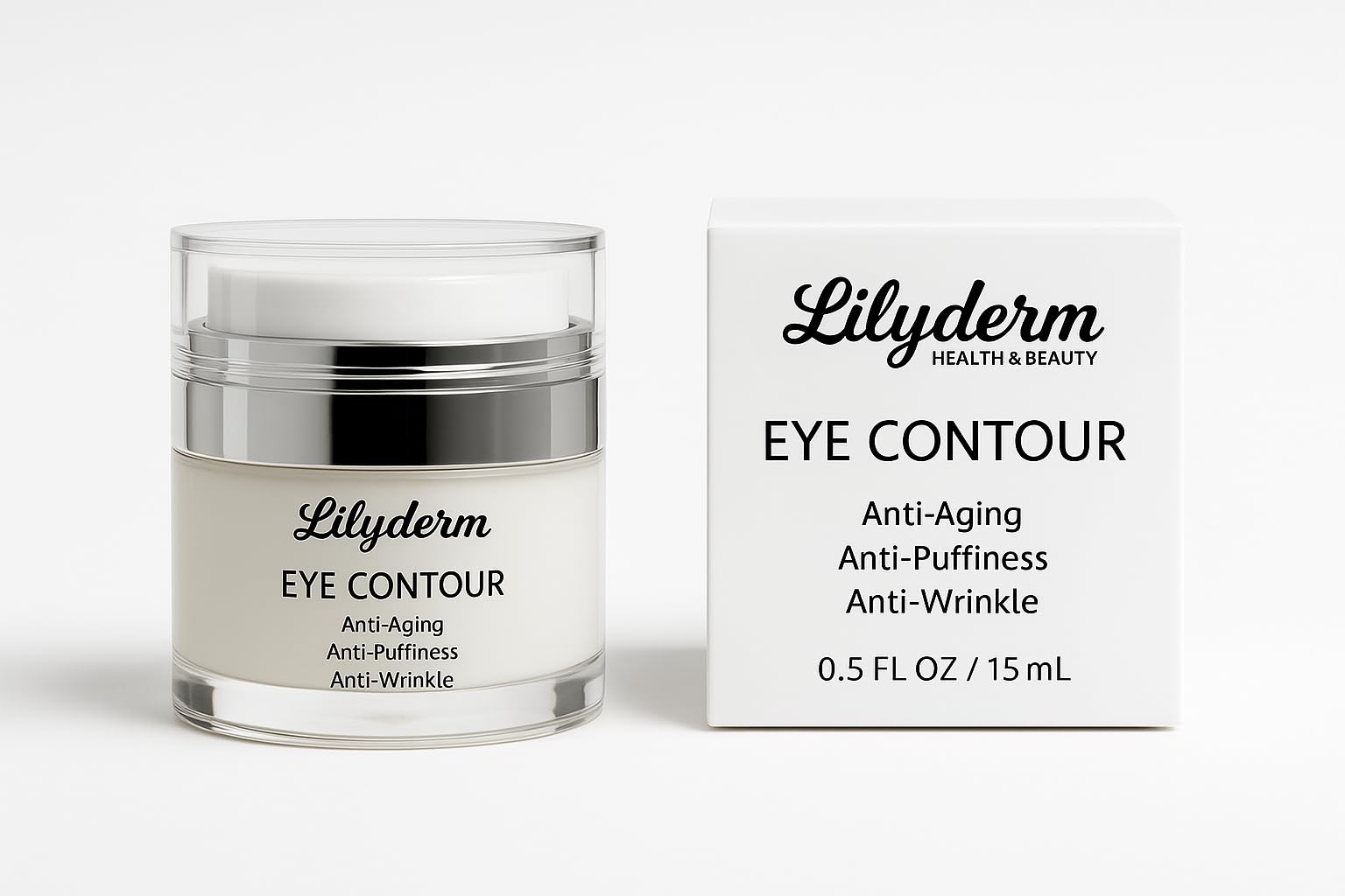 Discover the transformative power of Lilyderm Eye Contour, a sophisticated 0.5 fl oz (15 mL) eye treatment designed to address multiple aging concerns. This comprehensive formula targets three key eye area issues: aging signs, puffiness, and wrinkles. The specialized eye contour cream works to diminish the appearance of fine lines while helping to reduce under-eye puffiness that can make you look tired. The moisturizing formula helps maintain the delicate eye area's hydration while working to smooth and refine the skin's appearance. Perfect for those seeking a multi-action solution for their eye care routine, this elegant cream comes in a premium airless pump container that helps preserve the formula's effectiveness. For best results, apply a small amount around the eye area using gentle patting motions, focusing on areas of concern.