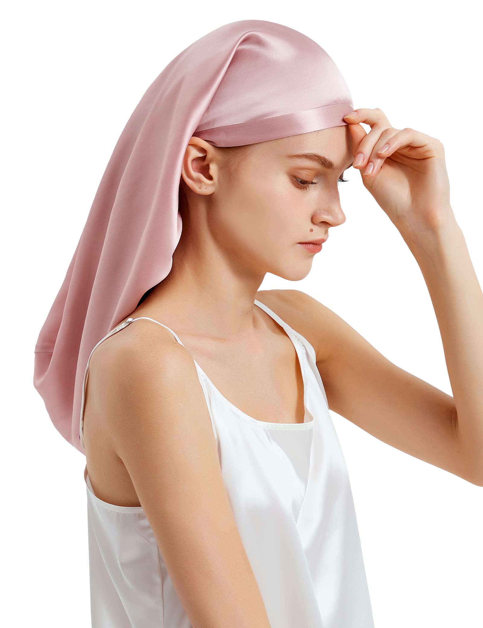 Many reasons to choose Lilysilk: You can safely trust Lilysilk if you expand your wardrobe.Our reasons are convincing: 6a class mulberry bead, Oeko-Tex-certified without chemicals, handmade high quality.Hair protection: The large -format silk night hat for long hair can keep the moisture of your hair at most.It not only increases the shine of the hair and supports its elasticity, but also prevents split off, fracture and hair loss.Updated details: In contrast to other silk caps, the silk hat is designed with a soft flat front that does not leave any prints after a long wear.The adjustable covenant has two long ligaments to tie, so that the hat does not drop easily.She is an excellent choice for sleeping and showering for herself, friends or family members.Silk sleeping cap for long hair: We updated our silk sleep hood to fit even for longer, smooth and curly hair with a larger capacity.It measures about 64 cm in length and 26 cm in width, and is equipped with a soft elastic waistband that can be individually adapted and can be stretched from 52 to 66 cm.100% real mulberry lide hair's cap: both inside and outside of this hood is made of 6a class 100% pure mulberry sue.Silk has the slightest friction on human skin from all types of fibers, offers comfort and contributes to hair growth.Breathable silk is widely seen as the ""second skin of humans"" and praised as ""queen of fibers"".She stays in place all night and feels light light.Viele Gründe, um LILYSILK zu wählen: Sie können LILYSILK bedenkenlos vertrauen, wenn Sie Ihre Garderobe erweitern. Unsere Gründe sind überzeugend: 6A Klasse Maulbeerseide, OEKO-TEX-zertifiziert ohne Chemikalien, handgefertigte Hochwertigkeit. HAARSCHUTZ: Die großformatige Seidennachtmütze für langes Haar kann die Feuchtigkeit Ihrer Haare maximal bewahren. Sie erhöht nicht nur den Glanz der Haare und unterstützt deren Elastizität, sondern verhindert auch Spliss, Bruch und Haarausfall. AKTUALISIERTE DETAILS: Im Unterschied zu anderen Seidenkappen ist die Seidenmütze mit einer weichen flachen Vorderseite entworfen, die nach langem Tragen keine Abdrücke hinterlässt. Der verstellbare Bund verfügt über zwei lange Bänder zum Binden, sodass die Mütze nicht leicht abfällt. Sie ist eine hervorragende Wahl zum Schlafen und Duschen für sich selbst, Freunde oder Familienmitglieder. SEIDEN SCHLAFMÜTZE FÜR LANGE HAARE: Wir haben unsere Seidenschlafhaube aktualisiert, um auch für längere, glatte und lockige Haare mit größerer Kapazität zu passen. Sie misst etwa 64 cm in der Länge und 26 cm in der Breite, und ist mit einem weichen elastischen Bund ausgestattet, der individuell angepasst werden kann und von 52 bis 66 cm gedehnt werden kann. 100% ECHTE MAULBEERSEIDE HAARKAPPE: Sowohl innen als auch außen dieser Seidenhaube besteht aus 6A Klasse 100% reiner Maulbeerseide. Seide hat die geringste Reibung auf der menschlichen Haut unter allen Arten von Fasern, bietet Komfort und trägt zum Haarwachstum bei. Atmungsaktive Seide wird weithin als ""zweite Haut des Menschen"" betrachtet und als ""Königin der Fasern"" gepriesen. Sie bleibt die ganze Nacht über an Ort und Stelle und fühlt sich dabei federleicht an.LilySilk Maulbeerseide Haarhaube Schlafmütze Schlafhaube 100% Seide von 19 Momme Lange Seidenmütze Kappe für lockiges Haar, Nachtmütze zum Schlafen, Seidenhaube für Frauen mit Langen Haaren Pfirsichrosa