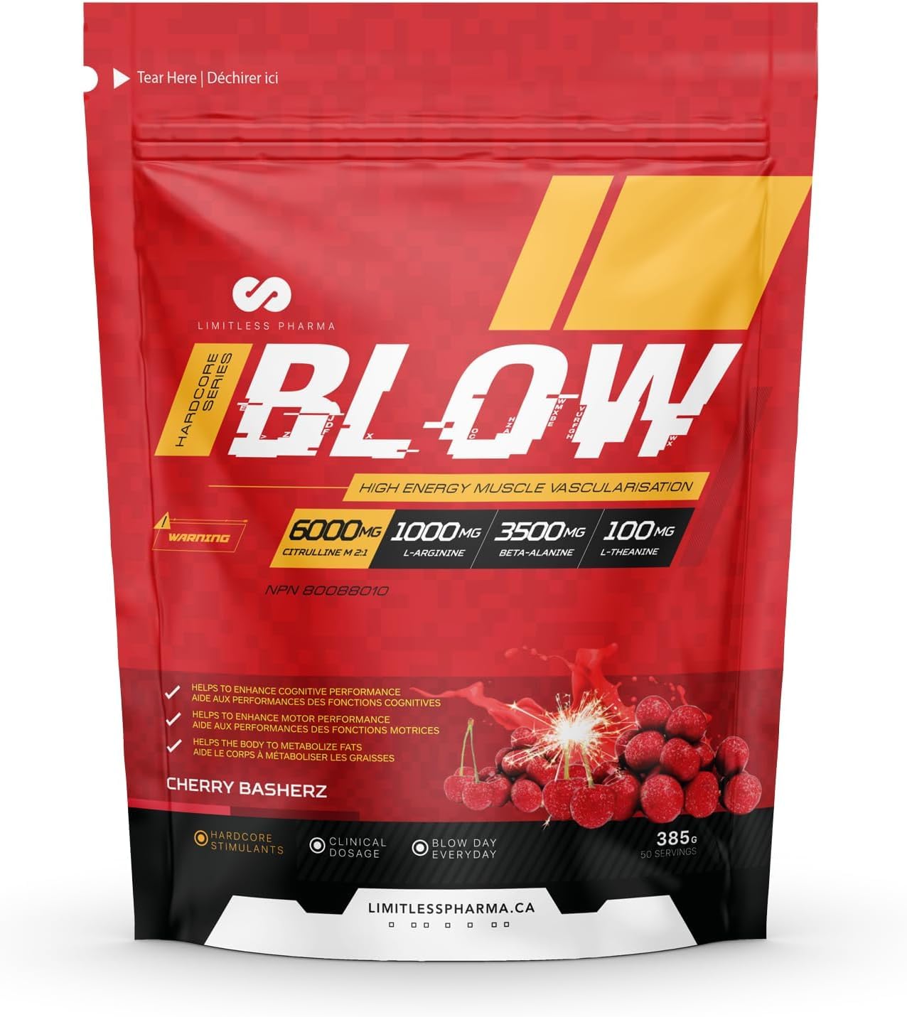 Limitless Pharma Blow Pre-Workout is a research-backed, state-of-the-art pre-workout supplement designed to help fitness enthusiasts get the most out of your training sessions. This unique pre-workout formula will give you maximum energy and motor performance, increase nitric oxide production leading to improved muscle pumps, help increase alertness and focus and improve the overall cognitive function to prepare your body and mind for hardcore training. Limitless Pharma Blow Pre-Workout provides immense Pumps, Stamina, Focus, and Relentless Energy to get going for hours! L-Arginine and L-Citrulline in Blow will boost the blood flow to the nerves and muscles, allowing quick recovery, Caffeine will keep you focused and active during the exercise, while L-Theanine helps keep the body calm and relaxed. Being rich in high-value nutrients & ingredients, Limitless Pharma Blow Pre-Workout is a perfect supplement choice to get the much-needed pump, stamina, focus, and energy for an intense workout session. Limitless Pharma Blow Pre Workout works to provide increased energy, improved cognitive focus, increased nitric oxide production, improved muscle pumps, and an overall increased in strength, power, and endurance. Blow Pre-Workout is a complete pre-workout supplement that is designed specifically to give you incredible power, energy and mental focus for a workout. By minimizing muscle fatigue and keeping you energized for long, it ensures you get the most out of your exercise. Limitless Pharma Blow Pre-Workout Powder comes in 9 super delicious flavours, including Blue Raspberry, Pink Lemonade, Peach Candy, Fruit Punch, among others. Being rich in nutrients & ingredients, Limitless Pharma Blow Pre-Workout is a perfect choice to get the much-needed Energy, Cognitive Focus, and Muscle Pumps for an intense workout session. Recommended Dosage: Adults: One serving per day (half a scoop or 7.7g). Take with food. All Limitless Pharma Products are GMP Certified.