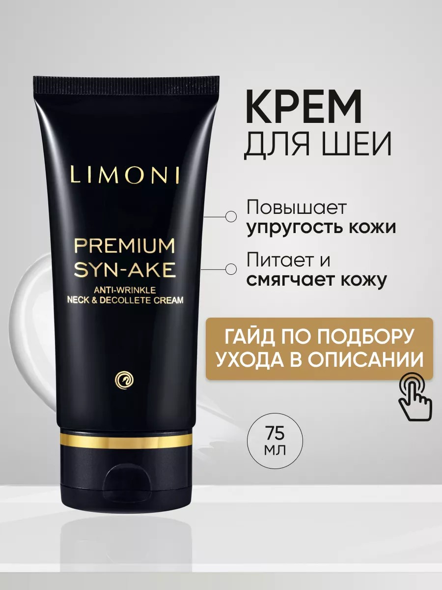 Серия премиум косметики от Limoni Premium Syn-Ake, в которую вошел крем для шеи и декольте от Limoni - результат разработок корейских специалистов в области косметологии и дерматологии. Активный компонент в составе крема - синтетический змеиный яд, направлен на эффективную борьбу с признаками старения кожи, обладая заметными и действенными антивозрастными эффектами. Увлажняющий крем со змеиным ядом предназначен для эффективной борьбы с возрастными изменениями в области шеи и декольте, керм подтягивает кожу, создает заметный лифтинг-эффект. Содержит уникальный пептид Syn-Ake, из-за которого крем так успешно оказывает на кожу активное антивозрастное действие, помогает в борьбе против морщин. В состав крема также входят важнейшие компоненты для борьбы с возрастными изменениями: морской коллаген и морской эластин, которые способствуют укреплению увядающей кожи, а также предотвращают потерю четкости зоны декольте и шеи. Крем великолепно питает и смягчает кожу, препятствует образованию морщин, омолаживает кожу шеи и декольте, сохраняя длительное увлажнение. Рекомендуется использовать ежедневно для поддержания красоты кожи шеи и зоны декольте.