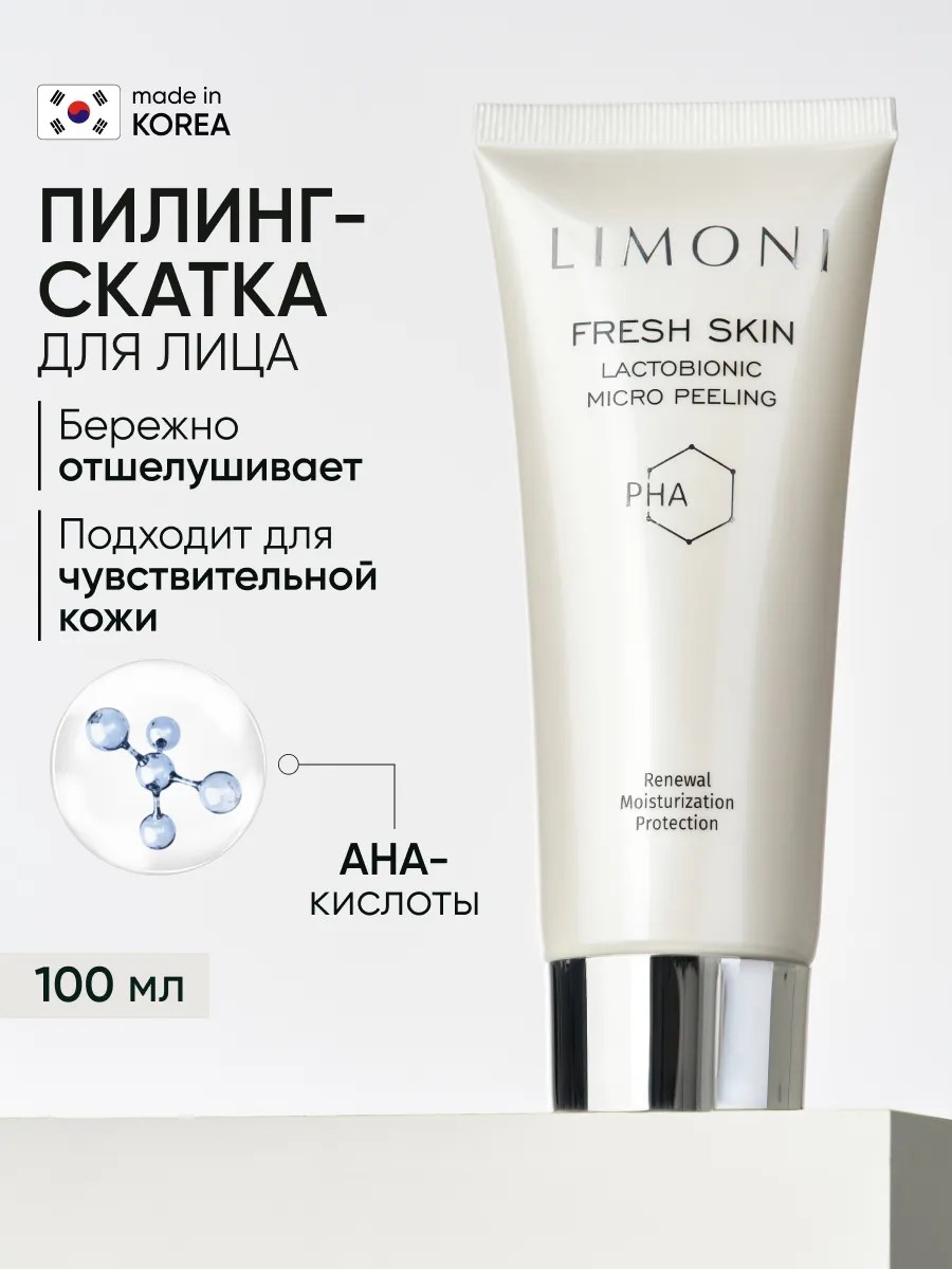 Корейская пилинг гель скатка для лица поможет обновлению Вашей кожи, улучшит ее тон и поможет в борьбе от черных точек. Очищение Fresh Skin важный ритуал, первая и очень серьезная ступень ухода за кожей. Лактобионовая гель-скатка для лица мягко обновляет, делает кожу ровной и упругой. 3 вида гиалуроновой кислоты в составе обеспечивают максимальное увлажнение кожи на трех молекулярных уровнях. Нежная текстура пилинг геля бережно очищает кожу, не травмируя ее. Корейский пилинг для лица с молочной PHA кислотой подходит для всех типов кожи, в том числе и для чувствительной. Благодаря щадящему составу гель-скатку можно использовать в любое время года.