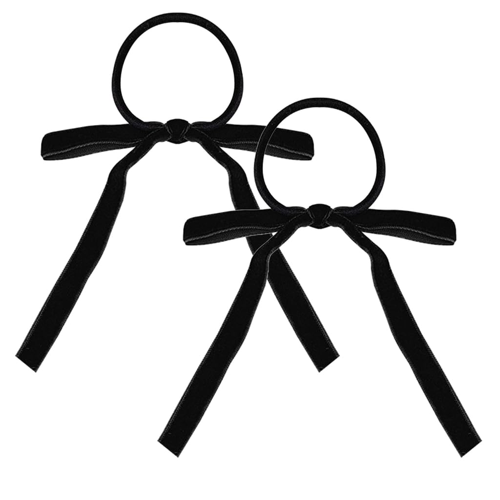 Limtula 2pieces Colorful Ribbon Bowknot Hair Scrunchies Elastic Hair Ropes Ponytail Holder Festival Woman Hair Supplies Black
