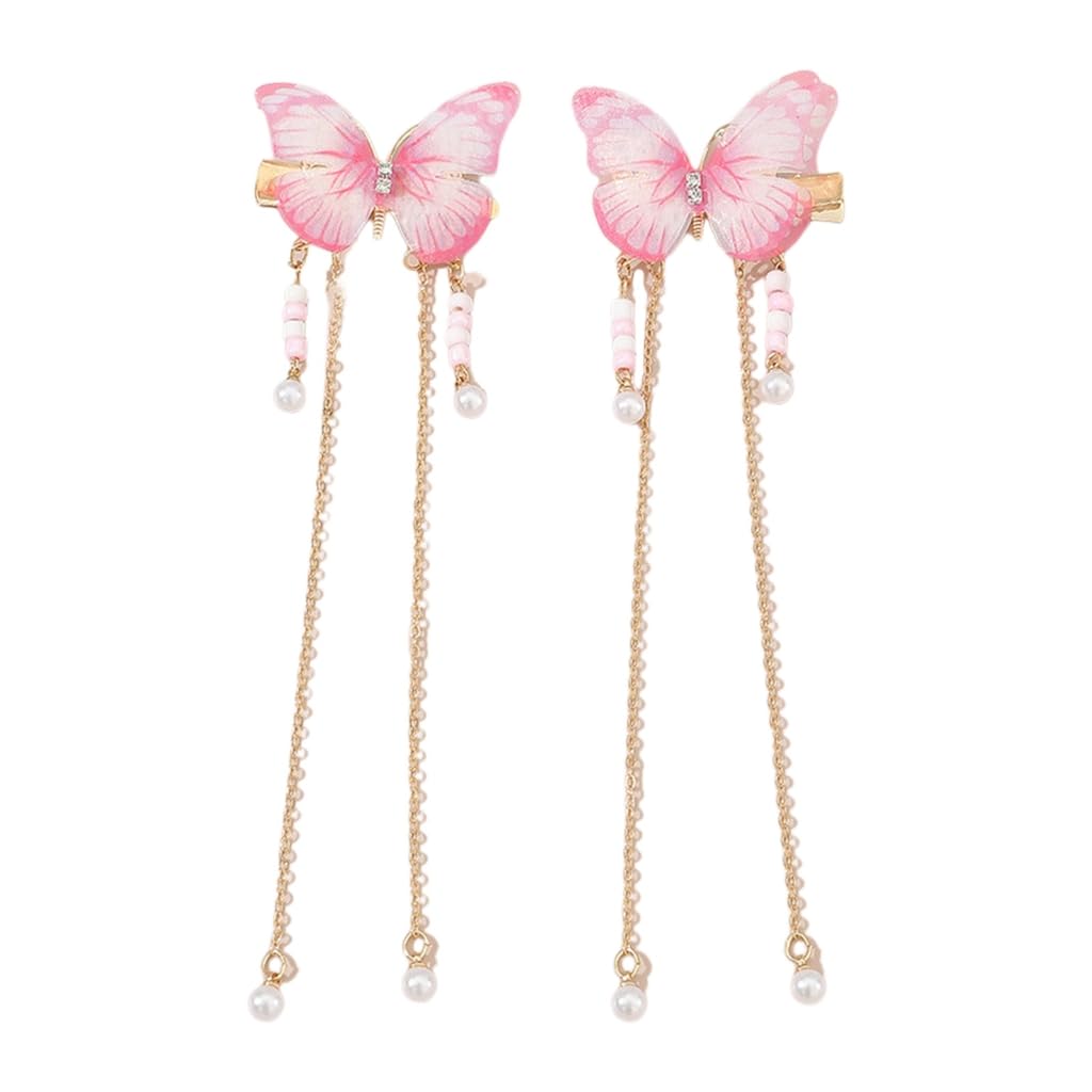 Limtula Chinese Hair Clip with Tassels Vintage Butterfly Hair Clip for Spring r Side Hair Ponytail Hairpins for Teens Pink