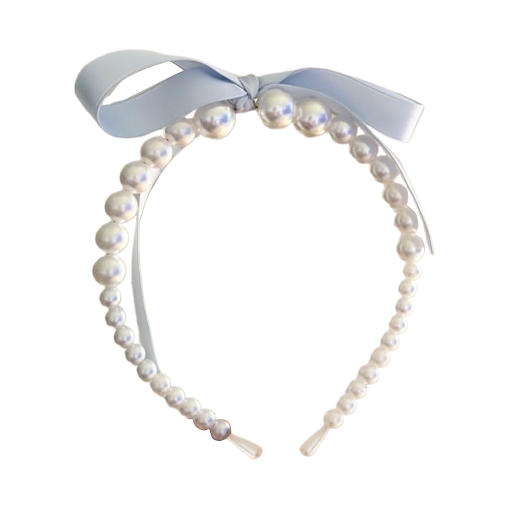 Limtula Pearls Bowknot Headbands for Woman Girl Ribbon Hairband for Skincare Makeup Delicate Hairband for Girl Taking Photo Blue