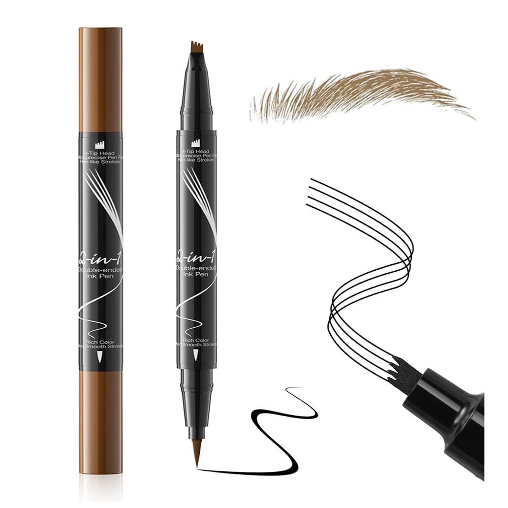 Linble 2 in 1 Natural Look Eyebrow Pen with Fork and Sharp Variations Hair-like Strokes Eyebrow Pen from "Linble " (#1 Light Brown)