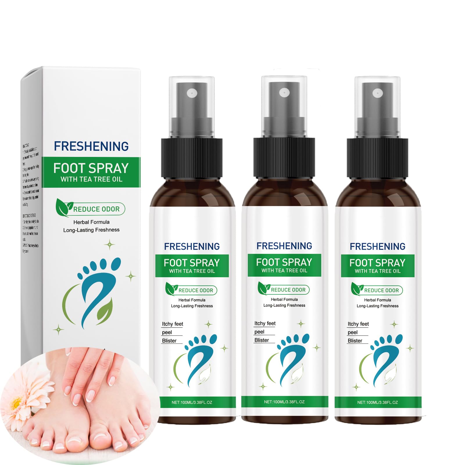 LinBomZony 3 x 100ml Sprays with Tea Tree Oil for Athletes Feet Odor Control and Cracked Heel Natural Deodorant for Men and Women
