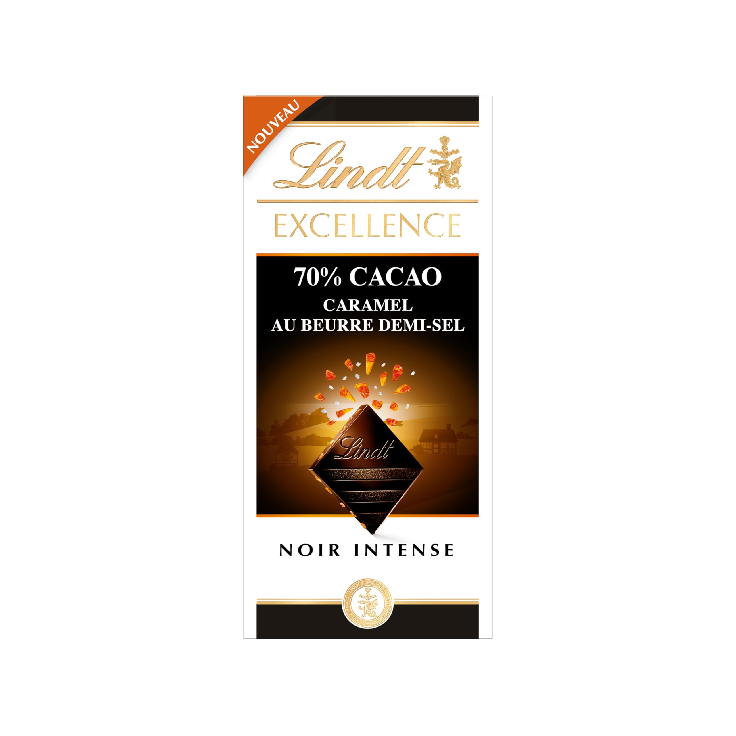 Close your eyes and discover the finest of pleasures. Lindt EXCELLENCE tasting chocolates are prepared for you by our Maîtres Chocolatiers with a rare demand for perfection: from the selection of the beans to the revelation of the finest flavors and textures of chocolate. Discover Lindt EXCELLENCE 70 Cacao Salted Butter Caramel: All the intensity of a fine 70 cocoa dark chocolate combined with delicious pieces of salted butter caramel from Isigny. INGREDIENTS Cocoa mass, sugar, cocoa butter, vanilla. Cocoa: 70 minimum.LINDT IS COMMITTED to sustainable development by ensuring the traceability of 100 of its cocoa beans back to their origin and by submitting them to external verification. SUPERIOR LINDT QUALITY: Since 1845, the passion and love for chocolate have been reflected in every step, from the selection of cocoa beans to the creation of the chocolate by Lindt Maîtres Chocolatiers. LINDT EXPERTISE: Lindt has been proud to offer chocolates of incomparable quality and finesse since 1845, by skillfully combining high-quality cocoa with the finest ingredients. Enjoy with friends over a cup of coffee during your daily breaks. AN EXCEPTIONAL RECIPE: The perfect combination of fine 70 cocoa dark chocolate combined with delicate pieces of Isigny semi-salted butter caramel. Fermez les yeux et découvrez le plus fin des plaisirs. Les chocolats de dégustation Lindt EXCELLENCE sont préparés pour vous par nos Maîtres Chocolatiers avec une rare exigence de perfection : de la sélection des fèves à la révélation des saveurs et des textures les plus fines du chocolat. Découvrez Lindt EXCELLENCE 70 Cacao Caramel Beurre Demi-sel : Toute l'intensité d'un fin chocolat noir à 70 de cacao allié à de savoureux éclats de caramel au beurre demi-sel d'Isigny. INGRÉDIENTS Pâte de cacao, sucre, beurre de cacao, vanille. Cacao : 70 minimum.LINDT S'ENGAGE en faveur du développement durable en assurant la traçabilité de 100 de ses fèves de cacao jusqu'à leur origine et en les soumettant à une vérification externe. QUALITÉ SUPÉRIEURE LINDT : Depuis 1845, la passion et l'amour pour le chocolat se retranscrivent à chaque étape, de la sélection des fèves de cacao à la conception du chocolat par les Maîtres Chocolatiers Lindt. L'EXPERTISE LINDT : Lindt est fier de proposer des chocolats d'une qualité et d'une finesse incomparables depuis 1845, en alliant avec justesse un cacao de haute qualité aux meilleurs ingrédients. A déguster entre amis autour d'une tasse de café lors de vos pauses du quotidien. UNE RECETTE D'EXCEPTION : L'accord parfait d'un fin chocolat noir 70 de Cacao allié à de délicats éclats de caramel au beurre demi-sel d'Isigny.