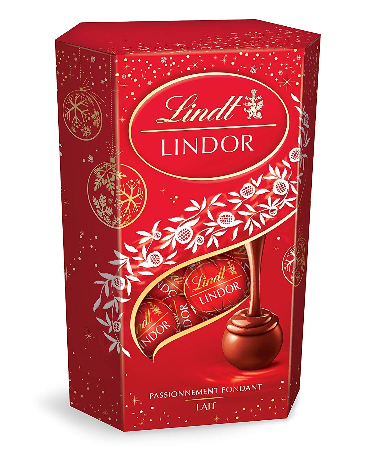 Discover the Lindor Cornet, the iconic Lindor recipe with a passionately melting heart. Lindt, The passion, finesse and expertise of Master Chocolatiers. INGREDIENTS Sugar, vegetable fat (coconut, palm kernel), cocoa butter, cocoa mass, MILK powder, skimmed MILK powder, LACTOSE, concentrated MILK butter, emulsifier (SOY lecithin), BARLEY malt extract, flavorings, vanilla.Melt with joy with Lindor, the chocolate with an incredibly smooth center. Bite into its delicate shell, and Lindor's irresistibly smooth center will sweep you away like a dream. Lindor, melt with joy. Découvrez le Cornet Lindor, la recette emblématique Lindor au cœur passionnément fondant. Lindt, La passion, la finesse et le savoir faire des Maitres Chocolatiers. INGRÉDIENTS Sucre, matière grasse végétale (coprah, palmiste), beurre de cacao, pâte de cacao, poudre de LAIT, poudre de LAIT écrémé, LACTOSE, beurre LAITIER concentré, émulsifiant (lécithine de SOJA), extrait de malt d'ORGE, arômes, vanille.Fondez de bonheur avec Lindor, le chocolat au cœur incroyablement fondant. Croquez sa délicate coquille, et le cœur irrésistiblement onctueux de Lindor vous emporte comme dans un rêve. Lindor, fondez de bonheur.