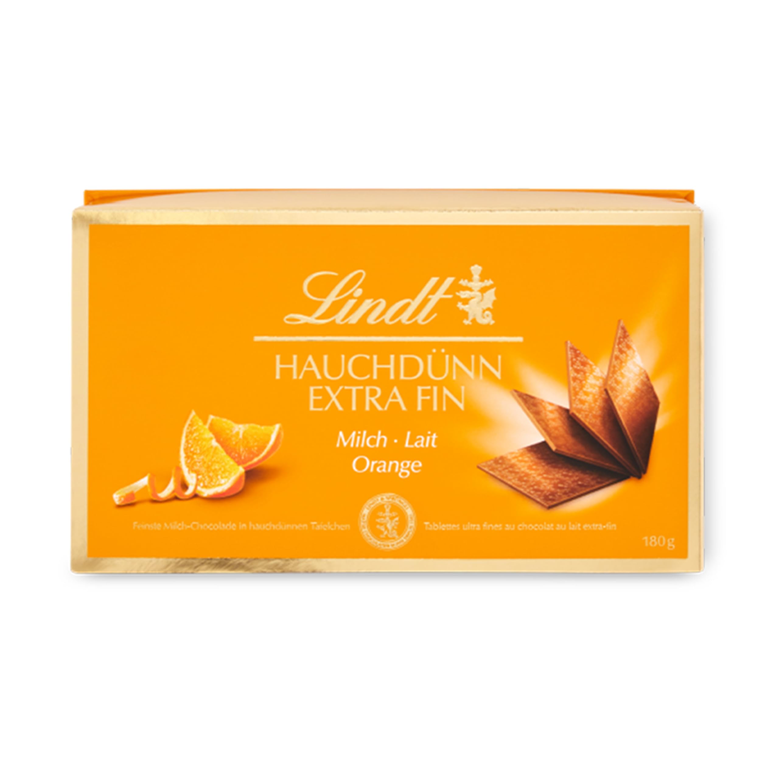 Delicious chocolate squares created by Lindt Master Chocolatiers with a combination that enhances the taste of orange with fine Lindt Milk Chocolate. The Extra Fine chocolate melts delicately in your mouth, revealing the aromas of Lindt cocoa. INGREDIENTS Sugar, cocoa butter, whole MILK powder, cocoa mass, LACTOSE, skimmed MILK powder, orange preparation 0.5 (concentrated orange juice 58 , glucose syrup, natural citrus extracts, acid [citric acid]), emulsifier (SOY lecithin), BARLEY malt extract, flavoring.Lindt - Boîte de carrés chocolat EXTRA FIN - Chocolat au Lait orange - 180gDESCRIPTION DU PRODUIT DESCRIPTION DU PRODUIT De délicieux carrés de chocolat créés par les Maîtres Chocolatiers Lindt avec une association qui exalte le goût de l'orange avec un fin Chocolat Lait Lindt. Le chocolat Extra Fin fond délicatement en bouche et retrouvez les arômes du cacao Lindt. INGRÉDIENTS Sucre, beurre de cacao, LAIT entier en poudre, pâte de cacao, LACTOSE, LAIT écrémé en poudre, préparation d'oranges 0,5 (jus d'orange concentré 58 , sirop de glucose, extraits naturels d'agrumes, acidifiant [acide citrique]), émulsifiant (lécithine de SOJA), extrait de malt d'ORGE, arôme.