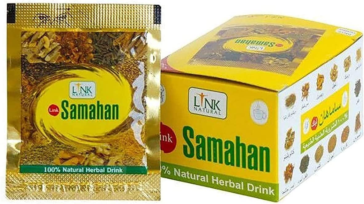 INGREDIENTS Coriander - Seeds, Ginger - Root, Black Pepper, Long Pepper, Calumba Wood - Stem, Premna Herbacea - Root, Evolvulus Alsinoides - Whole Plant, Cumin - Seed, Adhathoda Vasica - Root, Coptic Cumin - Seed, Alpinia - Rhizomes, Solanum Xanthocarpum - Whole Plants, Licorice, Mollugo Cerviana, Hedyotis Corymbosa - Whole Plant, Sugar Cane. INSTRUCTIONS 1. Infuse with hot water and enjoy Samahan tea. 2. Optional: Mix with milk, other hot beverages such as fruit tea, black tea, or coffee. 3. The unique blend of herbs will develop its distinctive character, and a slight, typical sharpness will be noticeable. SAFETY WARNING May contain spices and seasonings. Keep out of reach of children. See moreThé Samahan x 120 Sachets de Link NaturalDESCRIPTION DU PRODUIT INGRÉDIENTS Coriandre - Graines, gingembre - Root, Poivre noir, poivre long, bois de calumba - Stem, Premna Herbacea - Racine, Evolvulus Alsinoides - Plante entière, Cumin - Semence, Adhathoda Vasica - Racine, Coptic Cumin - Semence, Alpinia - Rhizomes, Solanum Xanthocarpum - Planches entières. Licorice, Mollugo Cerviana, Hedyotis Corymbosa - Plante entière, Cane Sugar. MODE D'EMPLOI 1. Infuser avec de l'eau chaude chaude et profiter du thé Samahan. 2. En option : mélanger avec du lait, d'autres boissons chaudes comme le thé aux fruits, le thé noir ou le café. 3. Le mélange unique d'herbes développera son caractère distinctif et une légère netteté typique sera perceptible. AVERTISSEMENT DE SÉCURITÉ Peut contenir des épices et des condiments. Tenir hors de portée des enfants. Voir plus