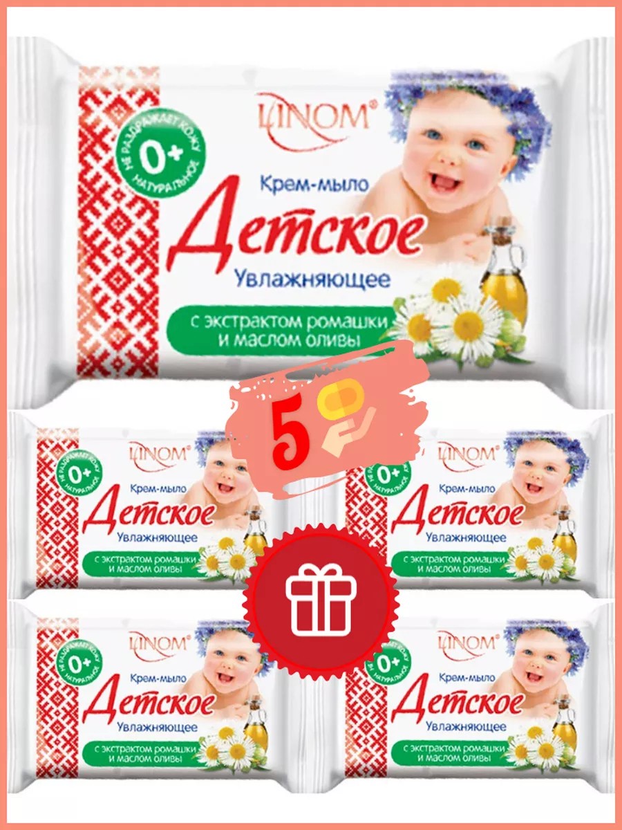 Детское крем-мыло «Увлажняющее» с маслом оливы и экстрактом ромашки — комплект 5 шт. LINOM (Беларусь)
