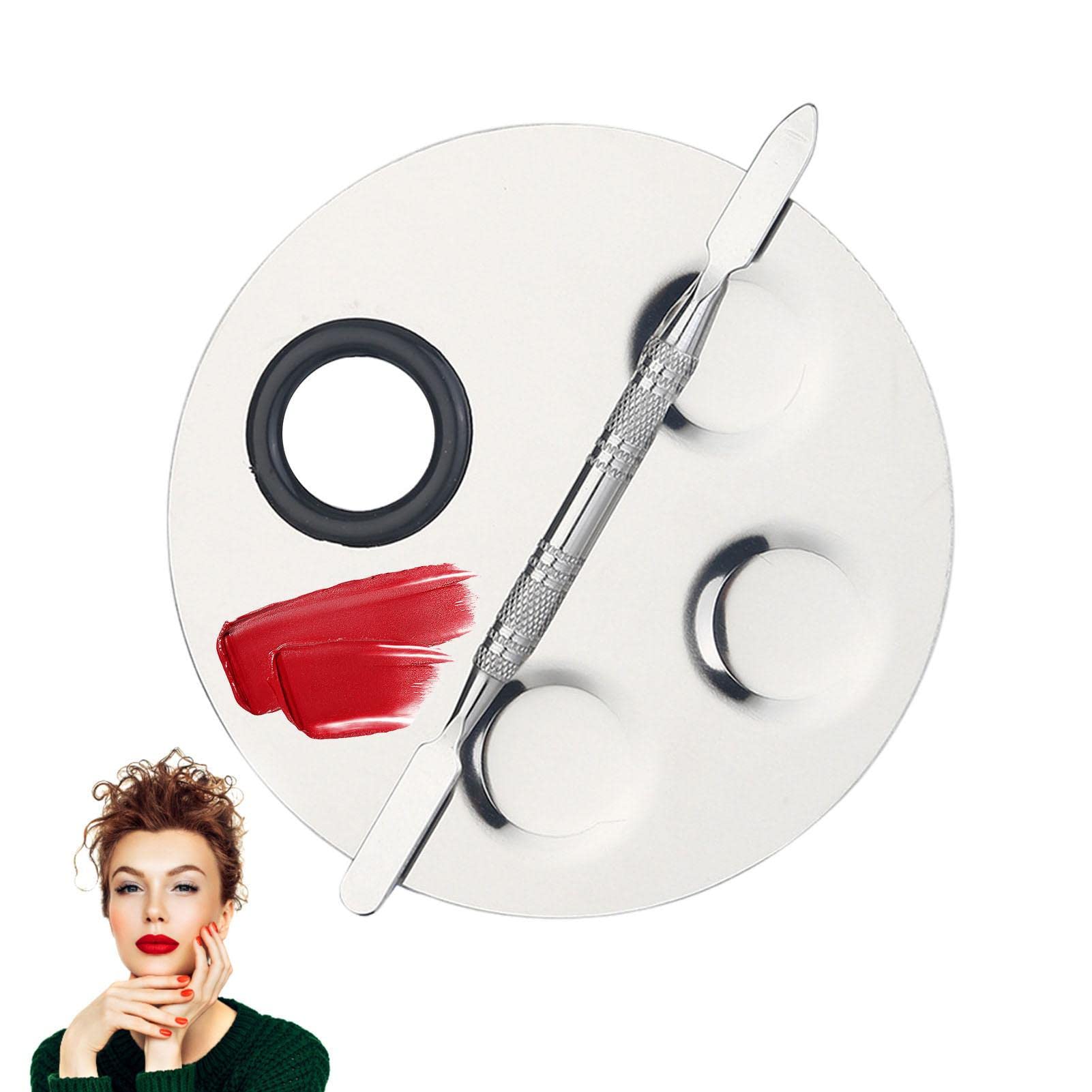 ?Wide range of uses: With this makeup palette tray, you can mix and match lipstick, liquid foundation, eyeshadow, or nail polish, and create various liquid or powder makeup products. It allows you to personalize your makeup as you wish. ?See your makeup clearly: This foundation palette has a smooth, glossy surface that reflects light and your face, so you can clearly see your makeup effect and apply it precisely. ?Clean in a snap: This makeup mixing palette makes cleaning easy. Just a gentle wipe with paper towels or damp cloths, and you're done. This palette resists makeup residue. ?Smooth blending: The double-ended, non-slip stick on this metal makeup palette features a round spoon and a flat spatula. You can use them to access and blend various makeup products smoothly and precisely. ?Not easy to break: The fine grinding process gives this metal palette a smooth finish and makes it resistant to drops. It is made of stainless steel, which is not easy to break or deform.