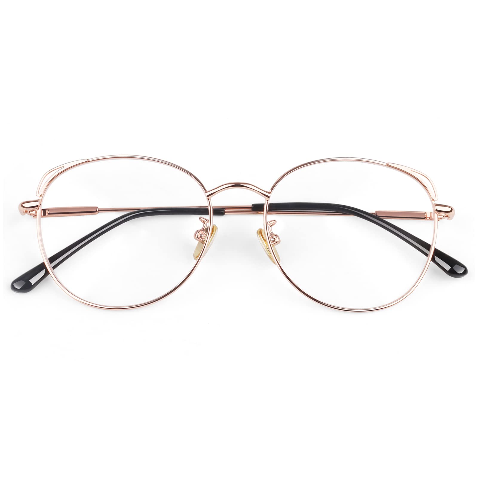 LINVO Brille Ohne Stärke Damen Klassische Metallgestell Brillenfassung Vintage Brille Katzenauge Fake Brille Roségold