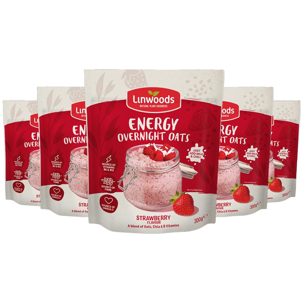 Linwoods Strawberry Energy Overnight Oats 5 x 300 g d'avoine de porridge Aliments sains pour le petit-déjeuner Végétalien et sans gluten 5x300g