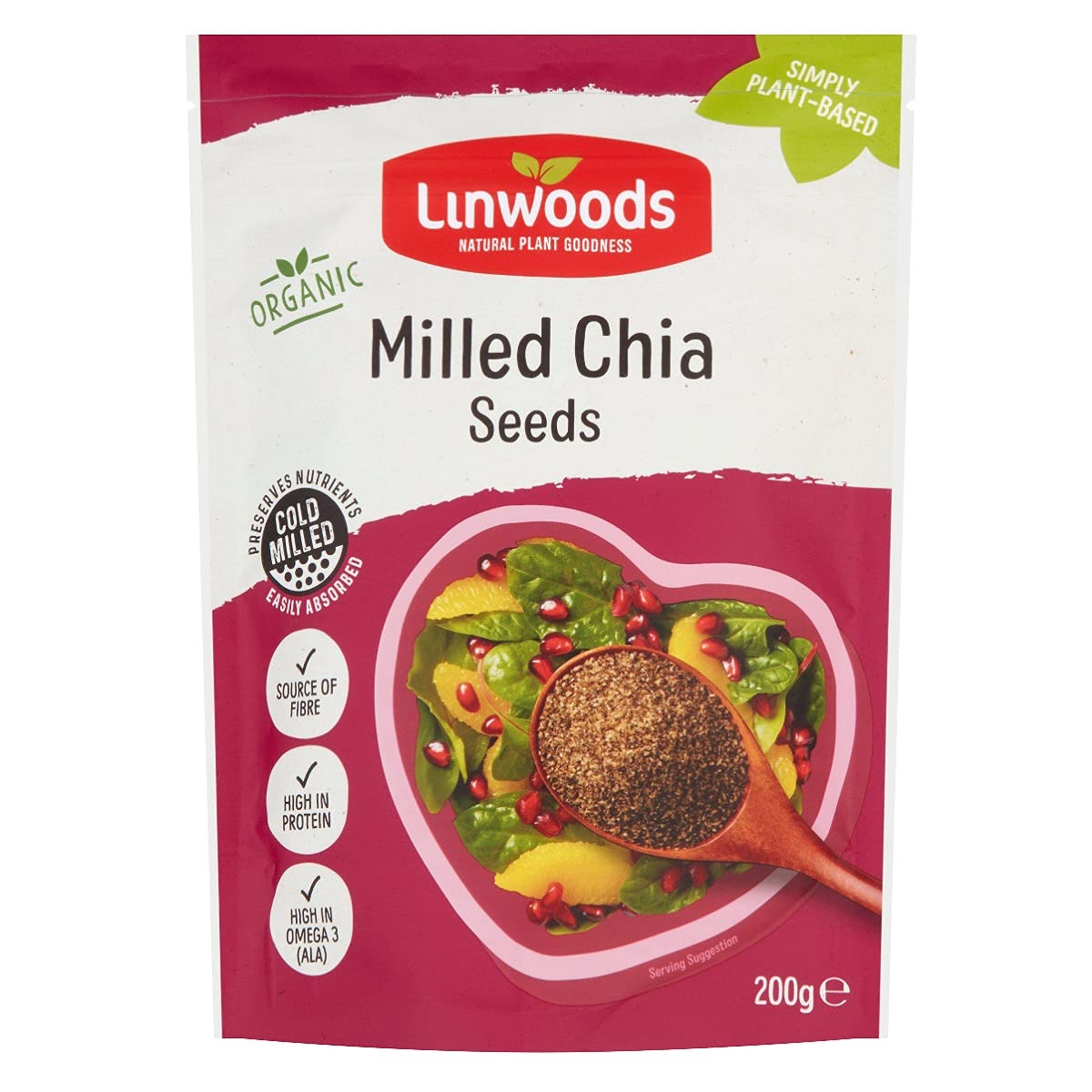 : "This latest addition to our range is the ancient chia seed (Salvia hispanica). Chia seeds have more fiber than any other seed in our healthy superfood range and are also a natural source of Omega 3. Protein Power One Packed Dessert Spoon (15g) of Blanched Chia Seed provides 3.1g of protein. Protein contributes to the growth and maintenance of muscle mass and the maintenance of normal bones. Oxygen Transport: Chia is a source of iron, providing 1mg of iron (7 of the RI) per 15g. Iron is important for the normal transport of oxygen in the body, helping the blood carry oxygen to every cell. It also contributes to the normal formation of red blood cells and helps reduce tiredness and fatigue." Blood Cholesterol: Chia is one of nature's richest plant sources of the omega-3 fatty acid alpha-linolenic acid (ALA), an essential polyunsaturated fatty acid used by the body that contributes to maintaining normal blood cholesterol levels. One heaped spoonful (15g) of Linwoods Blanched Chia provides 2.9g of ALA. Source of Fiber: Chia is rich in fiber, providing 5.7g of fiber per 15g. Strong Bones: Chia can help maintain normal bones. One serving (15g) provides 9 of the RI of calcium. Brand Information: At Linwoods, we source only the finest quality ingredients from around the world to produce our range of natural, healthy, tasty, and healthy superfoods. Nutritious. Features: Delicious and Nutritious! Source of Magnesium, A Rich Source of Fiber, Rich in Omega-3 Fatty Acids, No Added Sugar - Contains Natural Sugars, Nourishing, Naturally, A Natural Source of Omega-3!, Healthy Superfood, Dairy, Yeast, Gluten and GMO Free, Suitable for Vegetarian and Vegan Diets. Disclaimer: Please be aware that, unless expressly stated otherwise, product packaging may vary from what is shown in this advertisement. We recommend that you do not rely solely on the information presented in our listing. Please always read the labels, warnings, and directions provided before using or consuming the product.Quantity: 1. Linwoods Ground Chia 200G of Seeds.Description du produit "Ce Dernier Ajout À Notre Gamme Est L'Ancienne Graines De Chia (Salvia Hispanica). Graines De Chia A Plus De Fibres Que Toute Autre Graine Dans Nos Super-Aliments Sains Gamme Et Est Également Une Source Naturelle D'Oméga 3. Protein Power One Entassés Le Dessert Cuillerée (15G ) De Blanchi Chia Seed Fournit Des Protéines De 3,1 G. Les Protéines Contribuent À La Croissance Et Au Maintien De La Masse Musculaire Et Le Maintien D'Une Ossature Normale. Transport De L'Oxygène Chia Est Une Source De Fer Fournissant 1 Mg De Fer (7 Des Ajr) Par 15G. Le Fer Est Important Pour Le Transport De L'Oxygène Normale Dans Le Corps, Aidant Le Sang À Transporter L'Oxygène À Chaque Cellule. Elle Contribue Également À La Formation Normale Des Globules Rouges Et Permet De Réduire La Fatigue Et La Fatigue. Cholestérol Sanguin Chia Est L'Une Des Sources Végétales Les Plus Riches De La Nature De L'Omega 3 Acide Gras De L'Acide Alpha-Linolénique (Ala), Un Acide Gras Polyinsaturé Essentiel Utilisé Par L'Organisme Qui Contribue Au Maintien Du Taux De Cholestérol Dans Le Sang Normal. Une Cuillerée Bombée Le Dessert (15G) De Linwoods Blanchi Chia Fournit 2,9 G D'Ala. Source De Fibres Chia Est Riche En Fibres, Fournissant 5,7 G De Fibres Par 15G. Strong Bones Chia Peut Aider À Maintenir Des Os Normaux. Une Portion (15 G) Fournit 9 Des Ajr En Calcium .. "Information Marque: A Linwoods Nous Nous Approvisionnons Uniquement Les Meilleurs Ingrédients De Qualité Provenant De Partout Dans Le Monde Pour Produire Notre Gamme De Super-Aliments Naturels Et Sains, Savoureux Et Nutritifs. Caractéristiques: Délicieux Et Nutritif! , Source De Magnésium, Une Source Riche En Fibres, Riche En Oméga 3, Acides Gras, Sans Sucre Ajouté - Contient Des Sucres Naturels, Nourrir, Par Nature, Une Source Naturelle D'Oméga-3 !, Super-Aliments Sains, Produits Laitiers, Levure, Gluten Et Les Ogm Libre, Convient Aux Régimes Végétariens Et Végétaliens Clause de non-garantie S'il vous plaît être conscient que, sauf indication contraire expresse, l'emballage du produit peut varier de ce qui est montré sur cette annonce. Nous recommandons que vous ne comptez pas uniquement sur l'information présentée sur notre liste. S'il vous plaît toujours lire les étiquettes, d'avertissement et indications fournies avant d'utiliser ou de consommer le produitQuantité: 1. Linwoods Broyés Chia 200G De Graines.Linwoods Milled Chia Seed 200g