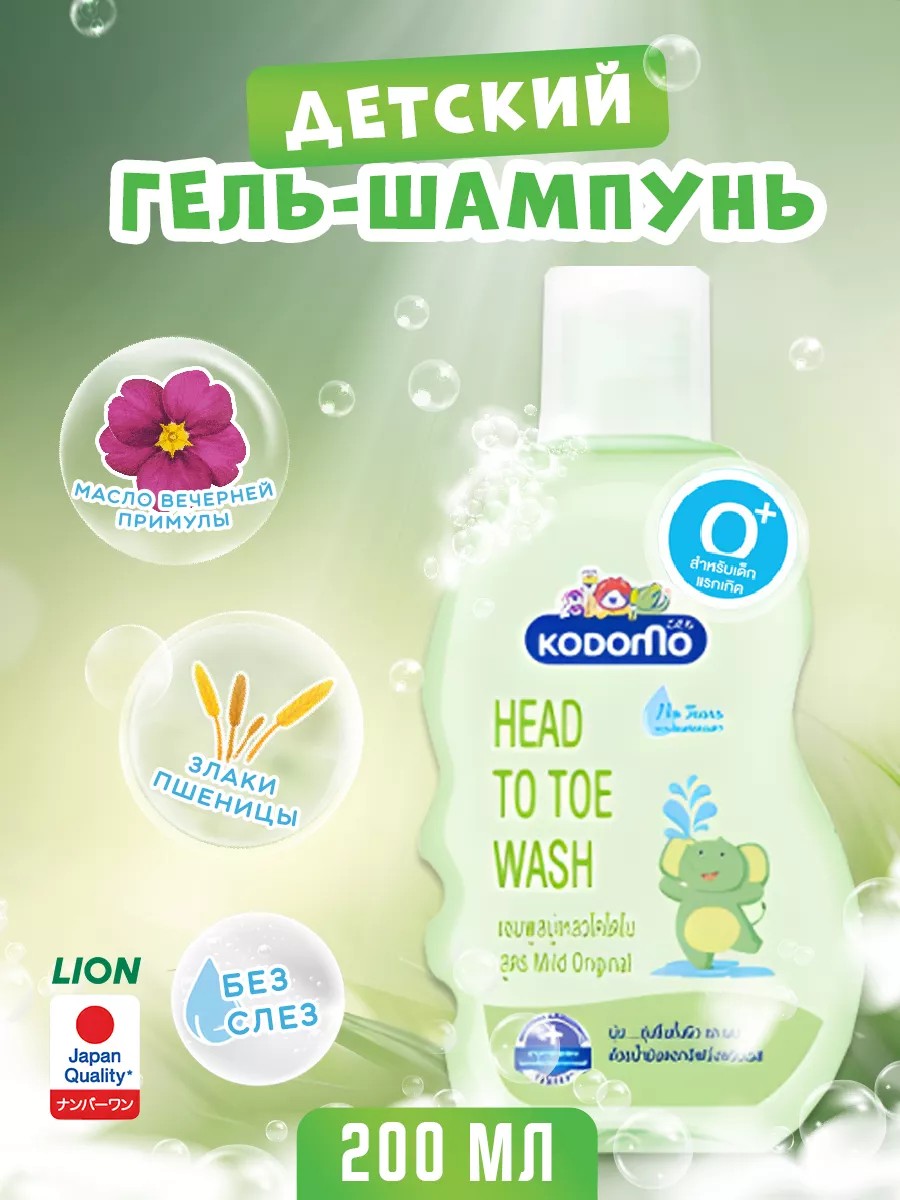 Детский шампунь и гель для душа 2в1 Kodomo Mild Original 0+ С головы до пят с экстрактом ромашки 200мл. Нежный и мягкий шампунь и гель для душа детский с гипоаллергенной формулой на основе натуральных растительных ингредиентов имеет нейтральный PH и подходит для детей с первых дней жизни. Гель и шампунь для детей с натуральным экстрактом ромашки обладает противовоспалительным и смягчающим действием, поддерживает естественный баланс увлажнения волос и кожи малыша. Средство для купания новорожденных имеет специально разработанный и тщательно проверенный дерматологами комплекс натуральных компонентов и позволяет деликатно очистить кожу и волосы малыша. Детское средство для купания детей не содержит опасных ингредиентов, таких как парабены, минеральные масла, спирты и силиконы, и подходит для чувствительной кожи детей. Детский шампунь без слез не содержит красителей, имеет нейтральный pH, не раздражает слизистую оболочку глаз и не вызывает слез. Гель для купания новорожденных и детей японской марки Лион из детской серии Кодомо разработан под строгим контролем качества, в соответствии с Международными Дерматологическими Стандартами Безопасности. Нажав на название продавца, вы увидите все наши корейские, японские товары категорий для мам и малышей, детская декоративная косметика, детский уход за телом для детей, уход за волосами, детская гигиена, детский шампунь гель для душа для девочек, для мальчиков, для новорождённых, средство для купания малыша, подарок ребенку, маме, новорожденному, производства Япония, Корея.
