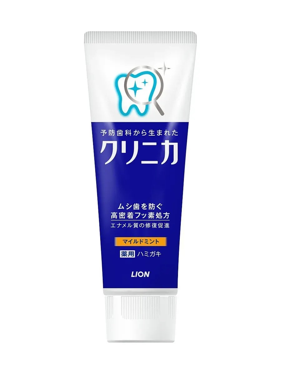 Lion Clinica Mild Mint Toothpaste with a light mint flavor, 130g. This multi-action toothpaste perfectly cleans and prevents plaque reappearance on the tooth surface, effectively preventing the onset and development of cavities. The combination of fluoride and a coating component (hydroxyethylcellulose dimethyldiaryl ammonium chloride) helps restore enamel, strengthens tooth structure, and creates a durable protective film on the surface. The active ingredient, sodium tetradecenesulfonate, softens plaque and facilitates its removal during brushing. With a light mint flavor. Ingredients: Sorbitol, Propylene Glycol, Polyethyleneglycol 4000 (humectants), Silicic Anhydride A (cleansing/polishing component), Silicic Anhydride, Sodium Alginate (viscosity regulators), Amidopropyl Betaine of Coconut Fatty Acid, Sodium Lauryl Sulfate, POE Stearyl Ether, POE Solid Castor Oil (foaming components), Mint Fragrance, Sodium Saccharin (flavorings), Xanthan Gum, Sodium Polyacrylate, Polyvinylpyrrolidone (thickeners), DL-Alanine, Titanium Oxide (stabilizer), Sodium Fluoride (fluoride), Dextranase Enzyme (active medicinal components), Menthol (freshener), Sodium Bicarbonate (cleansing component), Benzalkonium Chloride (preservative).