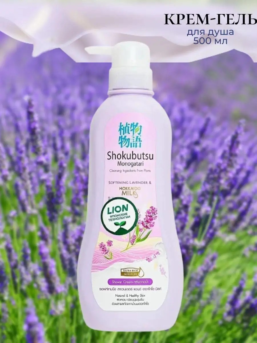 Нежный крем-гель для душа Lion Shokubutsu прекрасно очищает и увлажняет кожу, придает ей ощущение мягкости и наполняет здоровьем. Протеины молока питают кожу необходимыми микроэлементами и витаминами, которые делают кожу красивой и сияющей изнутри. Экстракт лаванды в составе тонизирует, успокаивает и смягчает кожу. Сочетание молока и лаванды будет способствовать регенерации кожи, а аромат поможет снять стресс и улучшить настроение.Серия нежных крем-гелей для душа Shokubutsu превратит обычный прием душа в приятный ритуал, который ваша кожа будет ждать с нетерпением.