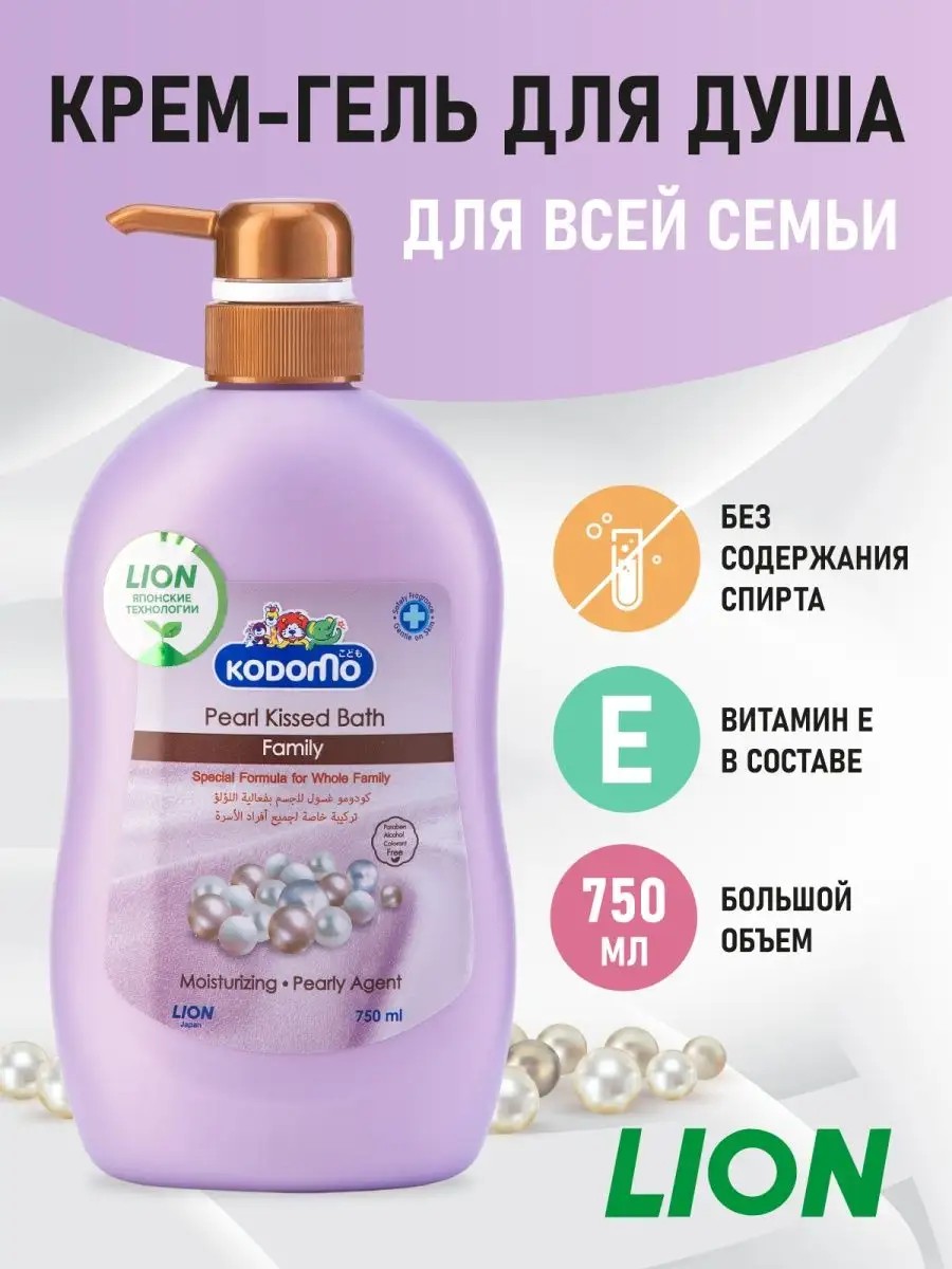 Lion's Pearl Kiss Shower Cream Gel with Vitamin E provides comprehensive skin care, gently cleanses, maintains a natural pH balance, and protects against dryness. This cream gel is suitable for both children and adults.