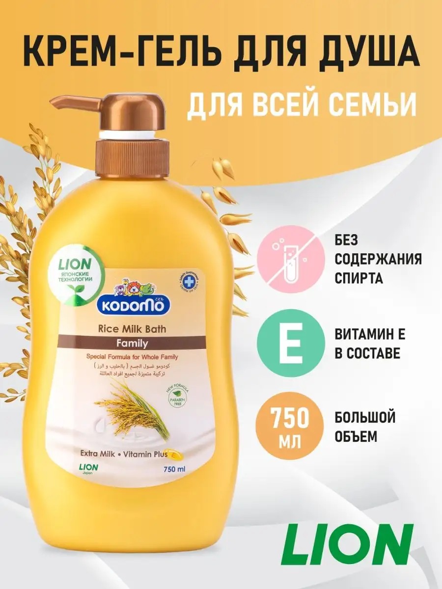 Крем-гель для душа увлажняющий Lion "рисовое молочко" с экстрактом рисовых отрубей и витамином Е обеспечивает комплексный уход за кожей, деликатно очищает, сохраняет естественный pH-баланс и защищает от пересушивания. Крем гель семейный - подходит для детей и взрослых. Предназначен для чувствительной, сухой и раздраженной кожи. Безопасен для нежной детской кожи. Обильная густая пена и нежный аромат помогают расслабиться и снять стресс. Средство предназначено для ежедневного использования. Подходит для рук и тела.