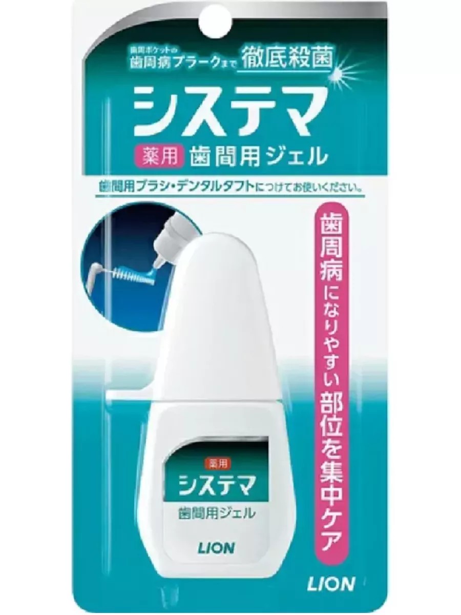 LION Dentor Systema Interdental Gel 18ml. The gel's therapeutic component acts directly on areas of gum inflammation (periodontitis) and heals them. The gel also combats the "bio-layer," which is the cause of periodontitis. The bio-layer is a thin film formed by bacteria that secretes toxins and can cause gum inflammation. This toothpaste provides a therapeutic effect thanks to three therapeutic components: The antibacterial component IPMP (isopropyl methyl phenol) penetrates the structure of the "bio-layer" and kills bacteria. The antibacterial component CPC (cetyl pyridium chloride) and the anti-inflammatory component glycyrrhetic acid prevent periodontitis. It is recommended to use the gel before bed to prevent an unpleasant sticky feeling in the mouth upon waking. The refreshing mint flavor leaves your mouth feeling fresh for a long time. Directions: 1) Apply gel to your interdental brush. You can also place a small amount of gel in the brush cap for better distribution. 2) Gently insert the brush between your teeth and make 2-3 back-and-forth movements. You can also use an interdental brush. 3) Rinse your mouth after brushing. You can also use a regular toothbrush. For best results, use the Dentor Systema interdental brush.